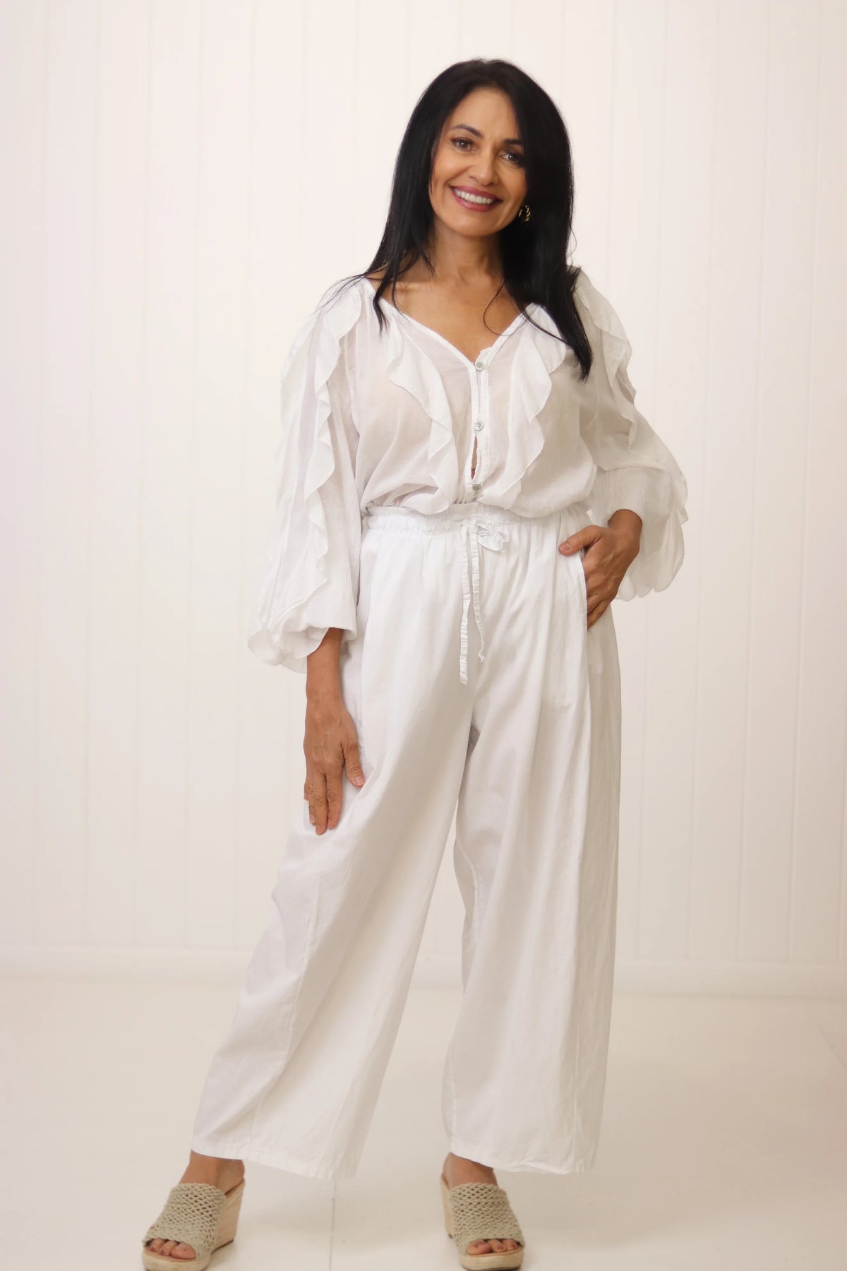 Drina is a size 8 and has styled the Amelia Draw String Pant with the Leah Button Shirt.