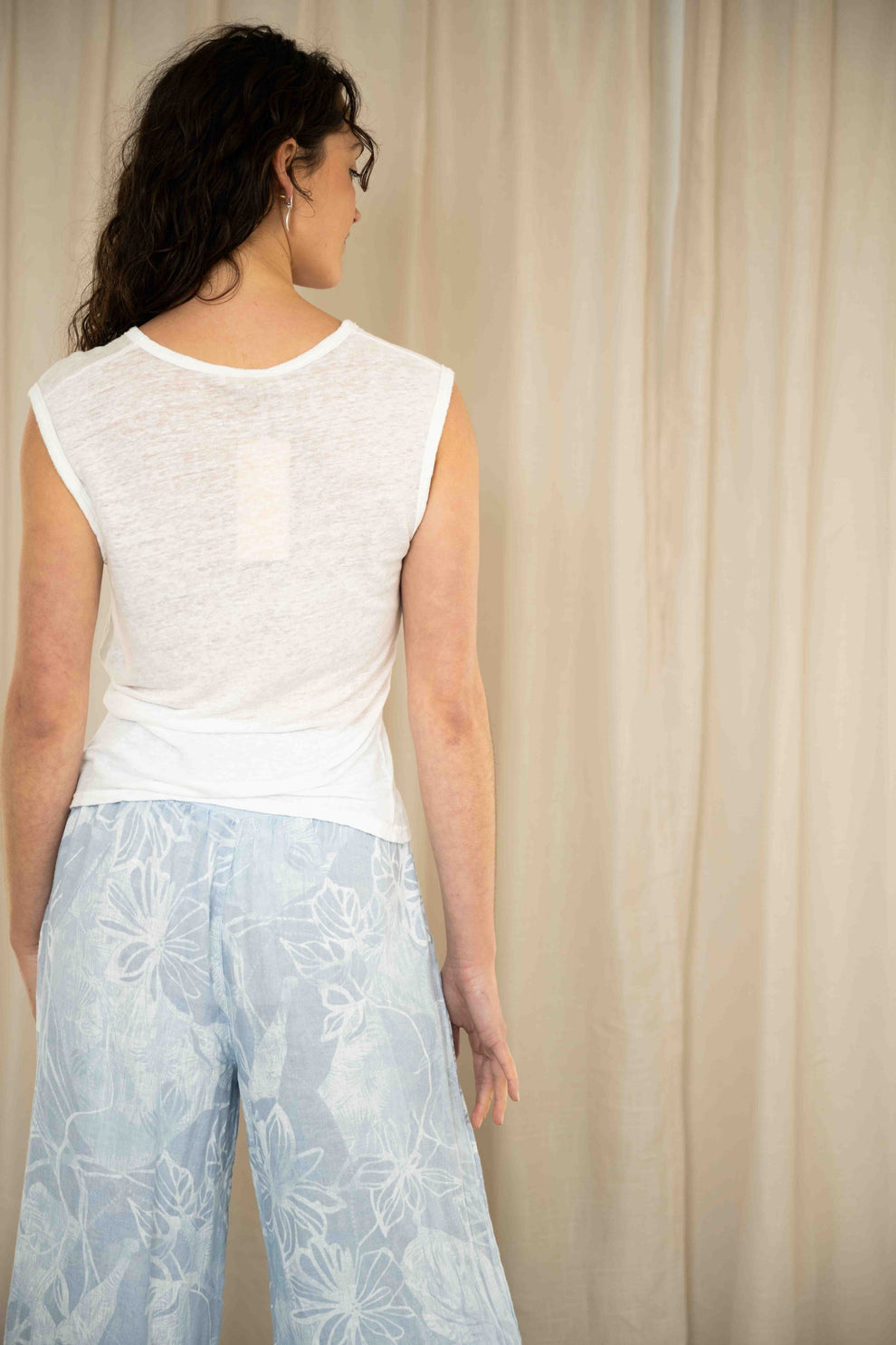 The Luxe Top in White is a clean, versatile essential designed for everyday wear. Crafted from a soft linen jersey blend, it offers the breathability of linen with the comfort and ease of stretch, making it a perfect go-to for warm days or effortless layering.