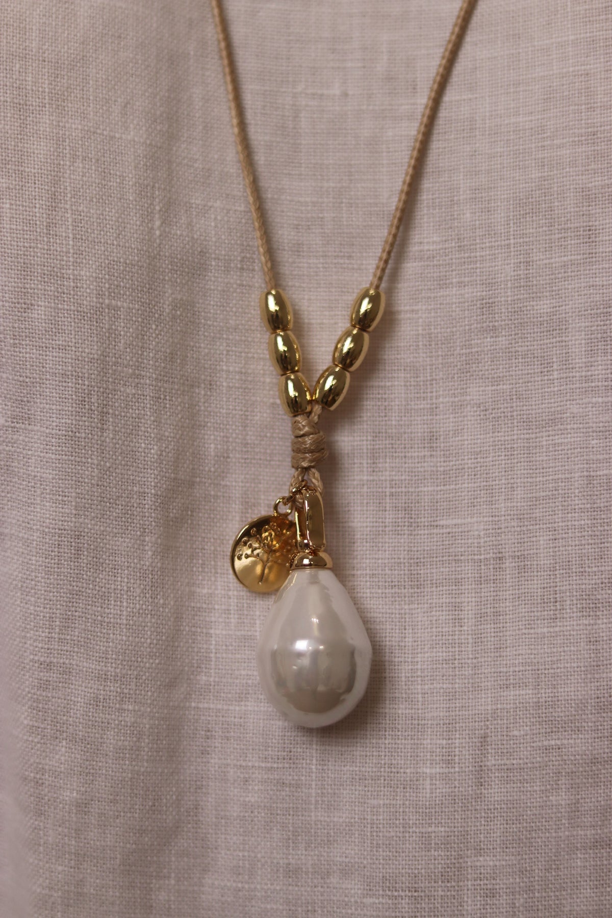The Mahli necklace is now in Gold! Exclusively to Sweet Charlotte the Mahli is a beautiful necklace with a pearl and gold tree pendant on leather. The combination of pearl gold and earthy leather make this a piece that will become a go to for for styling as it will suit so many different outfit combinations.