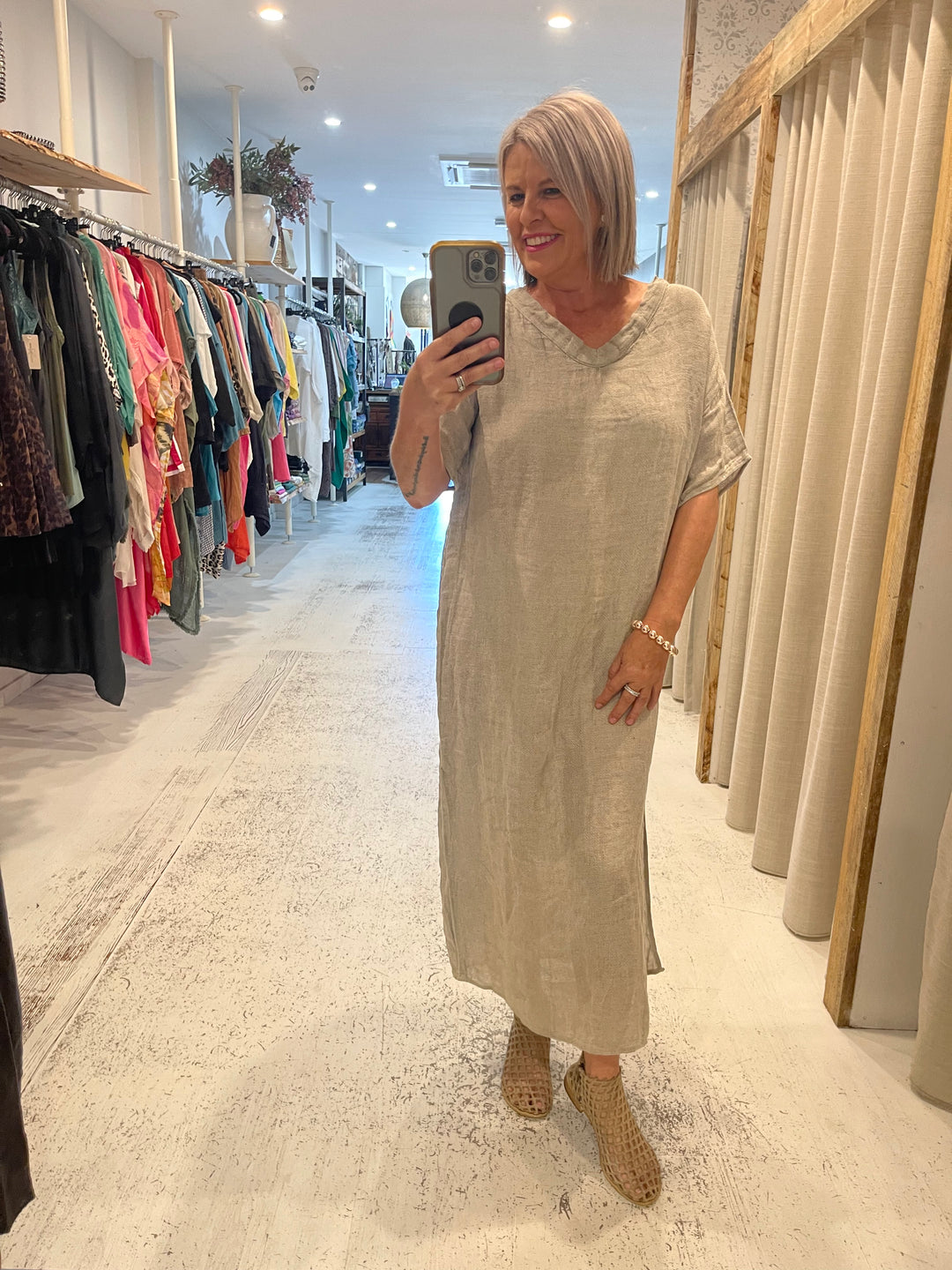 V Neck Maxi Dress Aida Naturale