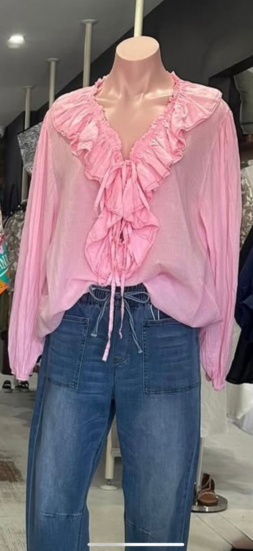 The Chablis Top is crafted from lightweight cotton, ensuring breathability and comfort. It features long puffy sleeves that add volume and a stylish silhouette. The tie-up neckline offers adjustable fit and a touch of elegance, while delicate frill details enhance its feminine appeal. This top is a refined choice for versatile, sophisticated dressing.