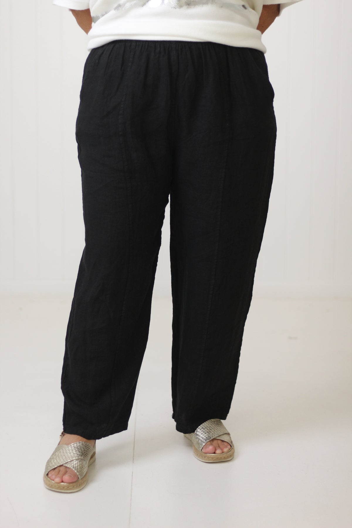 Crafted from 100% linen, the Cris Pant features an elastic waist for a comfortable fit and pockets for practicality. Its design makes it perfect for everyday wear and a versatile addition to your wardrobe. One size fits most, ensuring a flattering fit for all.