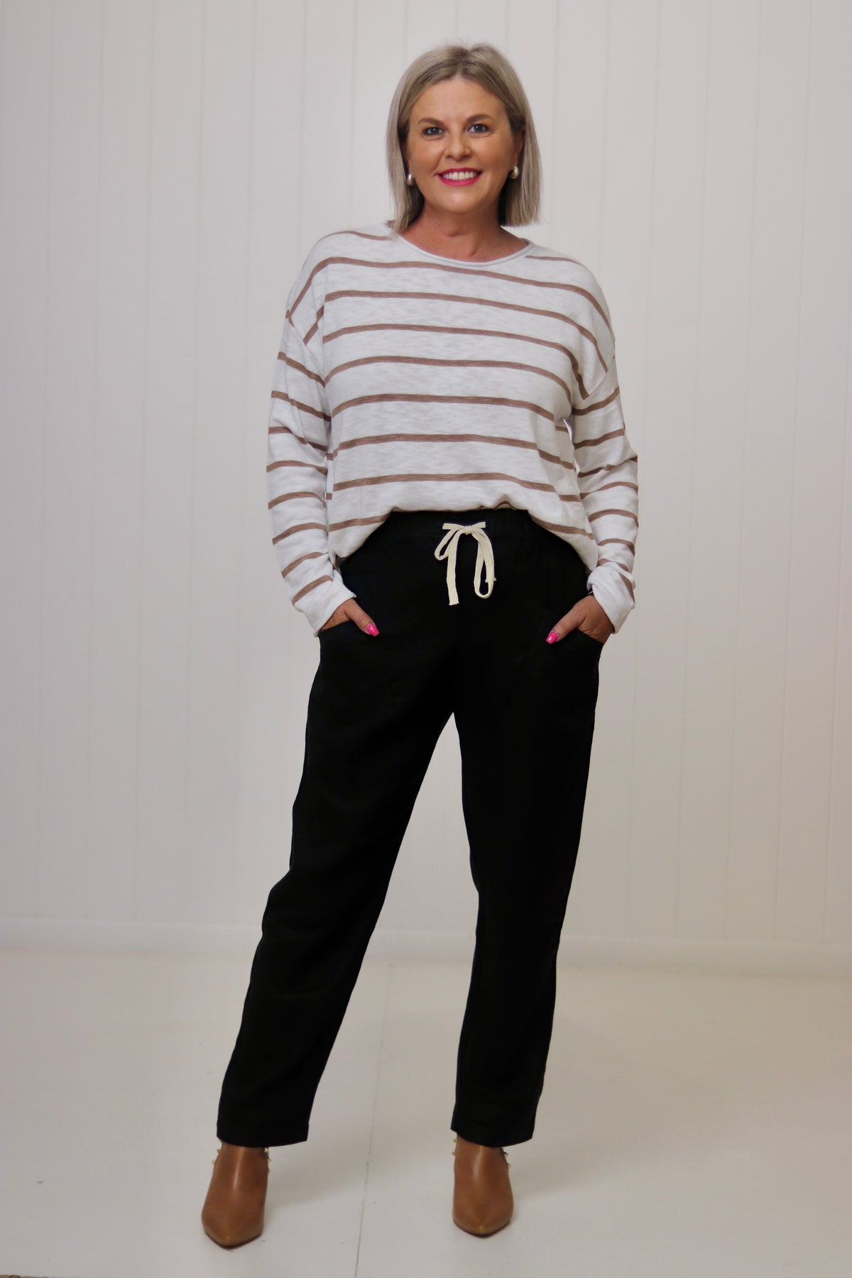 With its classic design, the relaxed linen luxe pants will quickly become a wardrobe staple due to their versatile nature of being able to style with most any top.