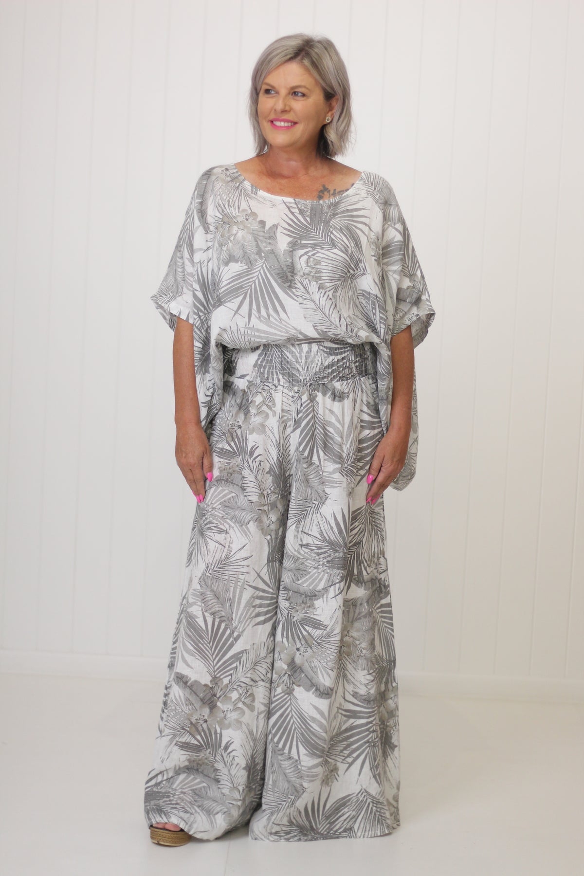 The perfect blend of comfort and style The Tropicana Top – created from 100% breathable linen, this lightweight and airy design keeps you cool and comfortable while looking fresh and fabulous. The short sleeves and classic rounded neckline and generous fit make it versatile for many shapes. Features a holiday vibe tropical tree print. Whether paired with relaxed linen pants or your favorite denim, the Tropicana Top is a great staple for warm-weather styling.