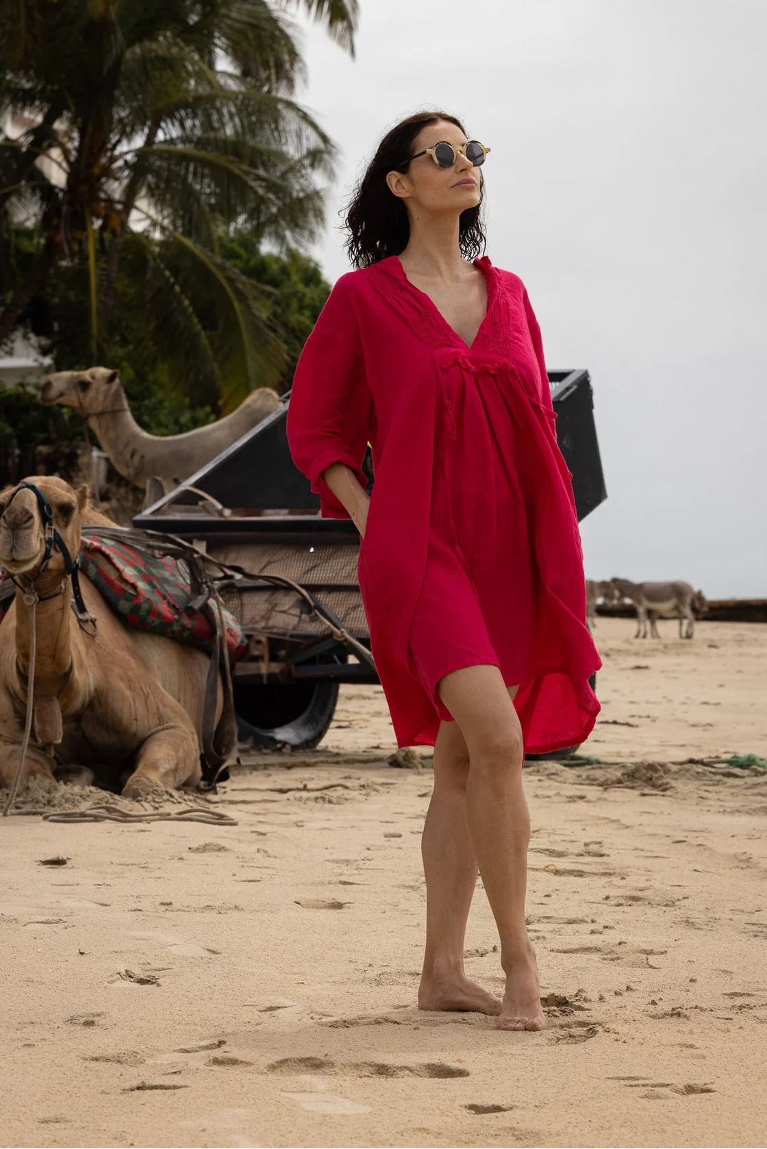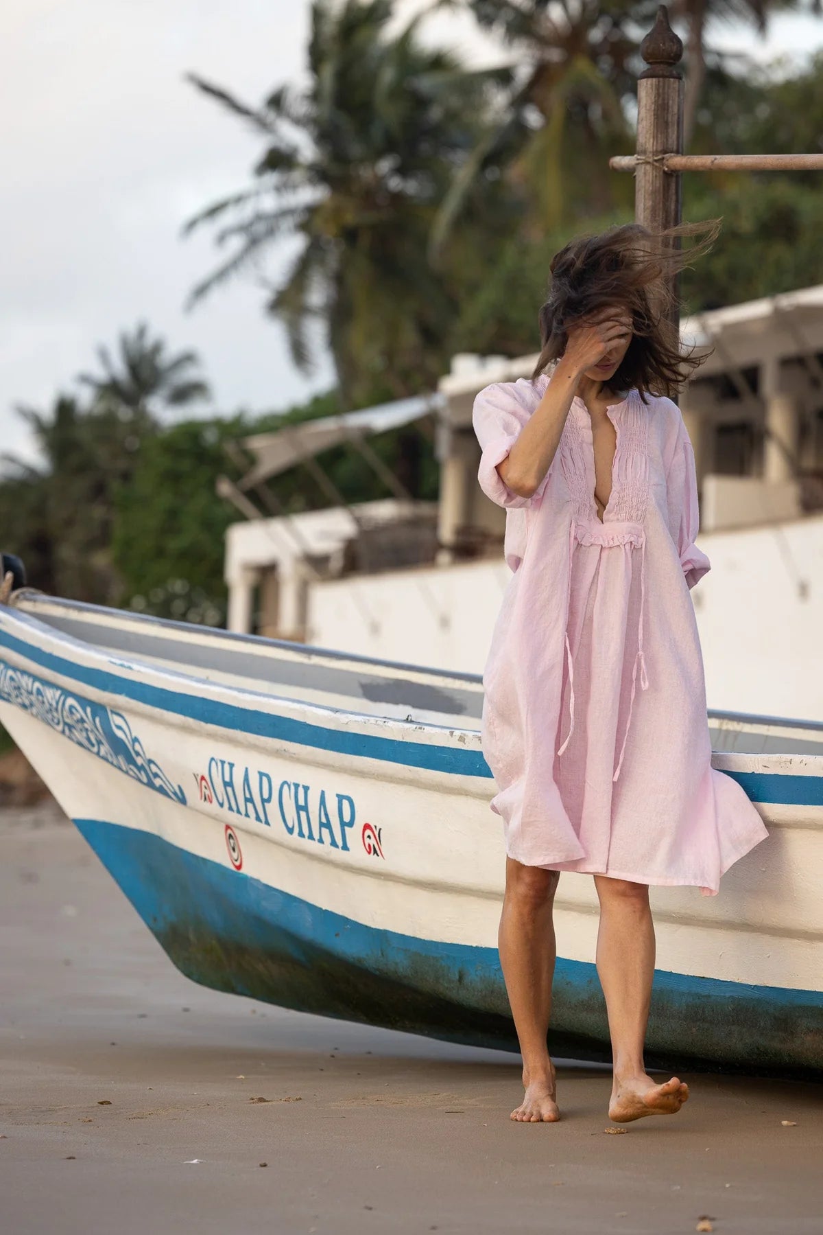 The Nzuri Tunic is a reinvented version of one of our earlier pieces. Made from medium-weight linen, it features a detailed bodice with soft ruching and decorative ties. Designed to be worn long, it pairs effortlessly with pants or leggings for a relaxed, casual look.