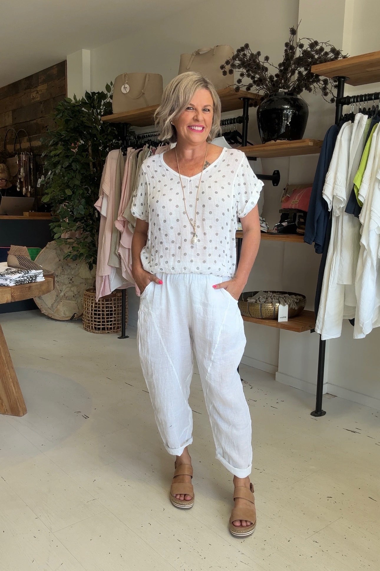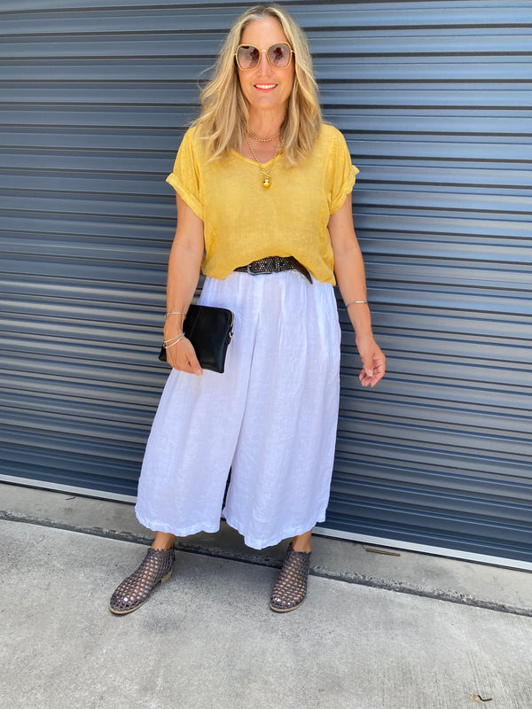 Imported from Italy, this luxurious collection of Italian linen clothing offers a range of tops, pants, dresses, skirts, jumpsuits and more. You can find our premium quality Montaigne linen products in lively, vibrant hues to soft, muted tones. The Montaigne linen clothing make the perfect transeasonal items, as the starring piece in warmer seasons and a layering essential in the colder months. A premium quality, timeless and versatile material, Italian linen is a beautiful complement when you pair it with denim, wool, cotton or your favourite fabric. Linen is a lightweight, airy material that will give you optimal comfort and breathability - essential for any relaxed but put together outfit, day or night. Throw on a Montaigne linen dress for a day out and a linen top with dress pants for the office.