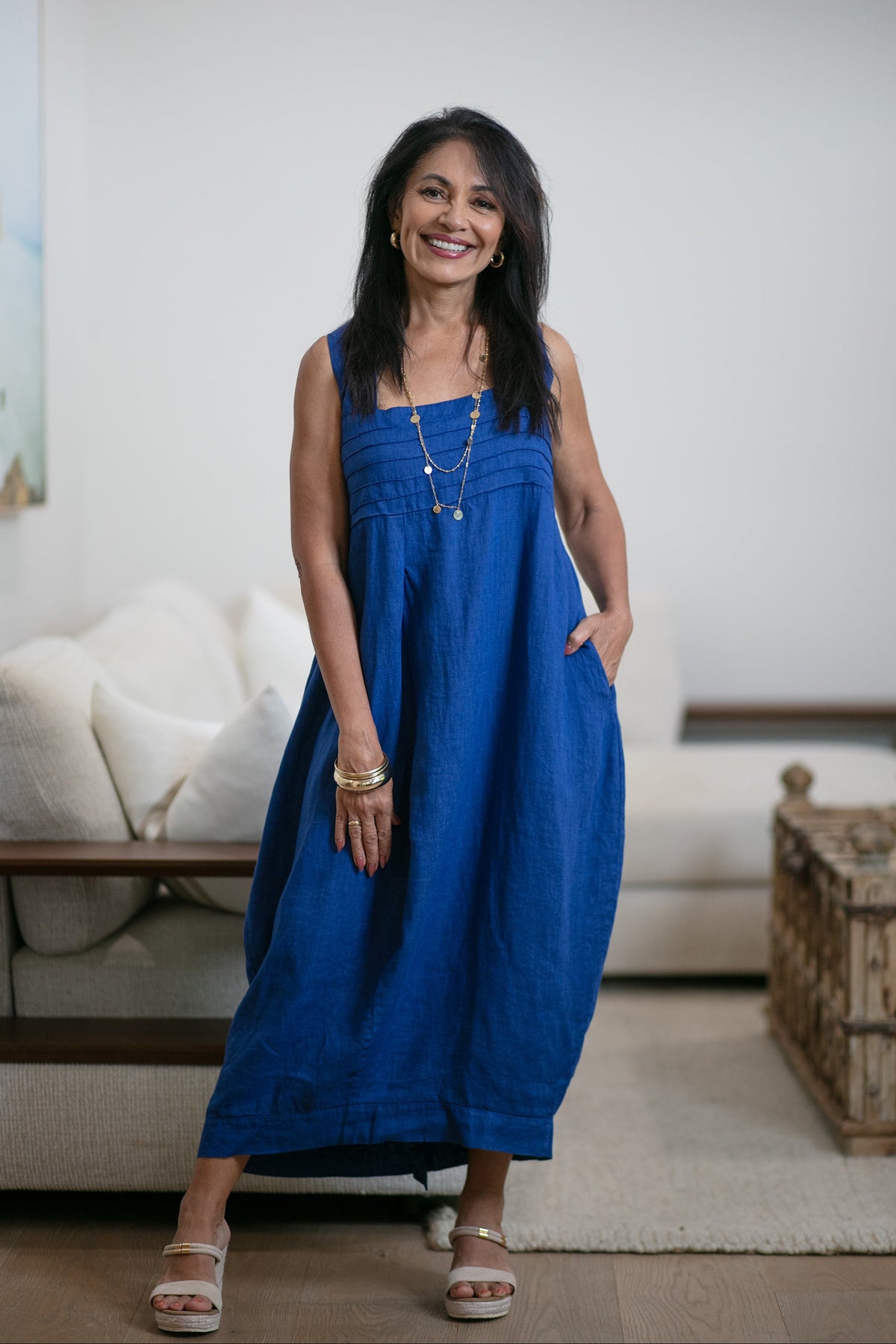 The gorgeous Bex Dress in Italian linen is a customer favourite featuring a square neckline and a flattering tulip shape. There is a stretch panel on the back bodice making it very comfortable to wear. Two other sweet features, are the detailed trim feature on the front and the tiny buttons on the back hem. Perfect by itself, or layer for winter. Anything from a sneaker to a heel, and you're good to go.