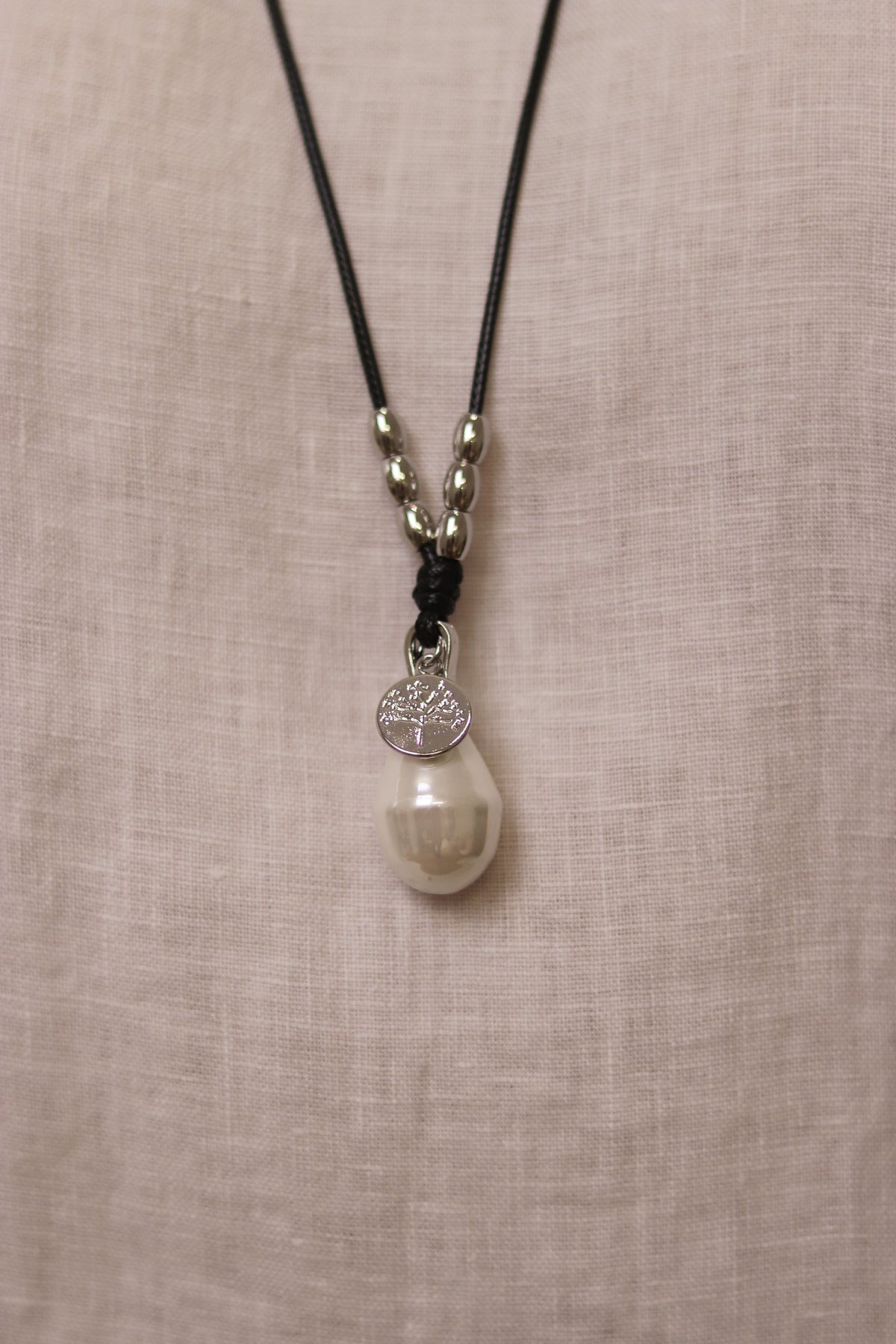 The Mahli necklace is now in black! Exclusively to Sweet Charlotte the Mahli is a beautiful necklace with a pearl and silver tree pendant on leather. The combination of pearl silver and earthy leather make this a piece that will become a go to for for styling as it will suit so many different outfit combinations.