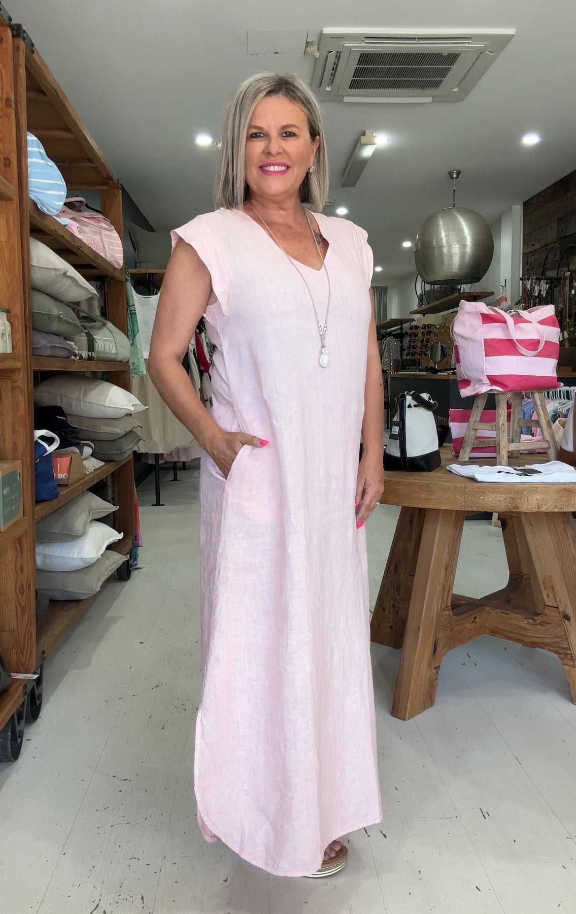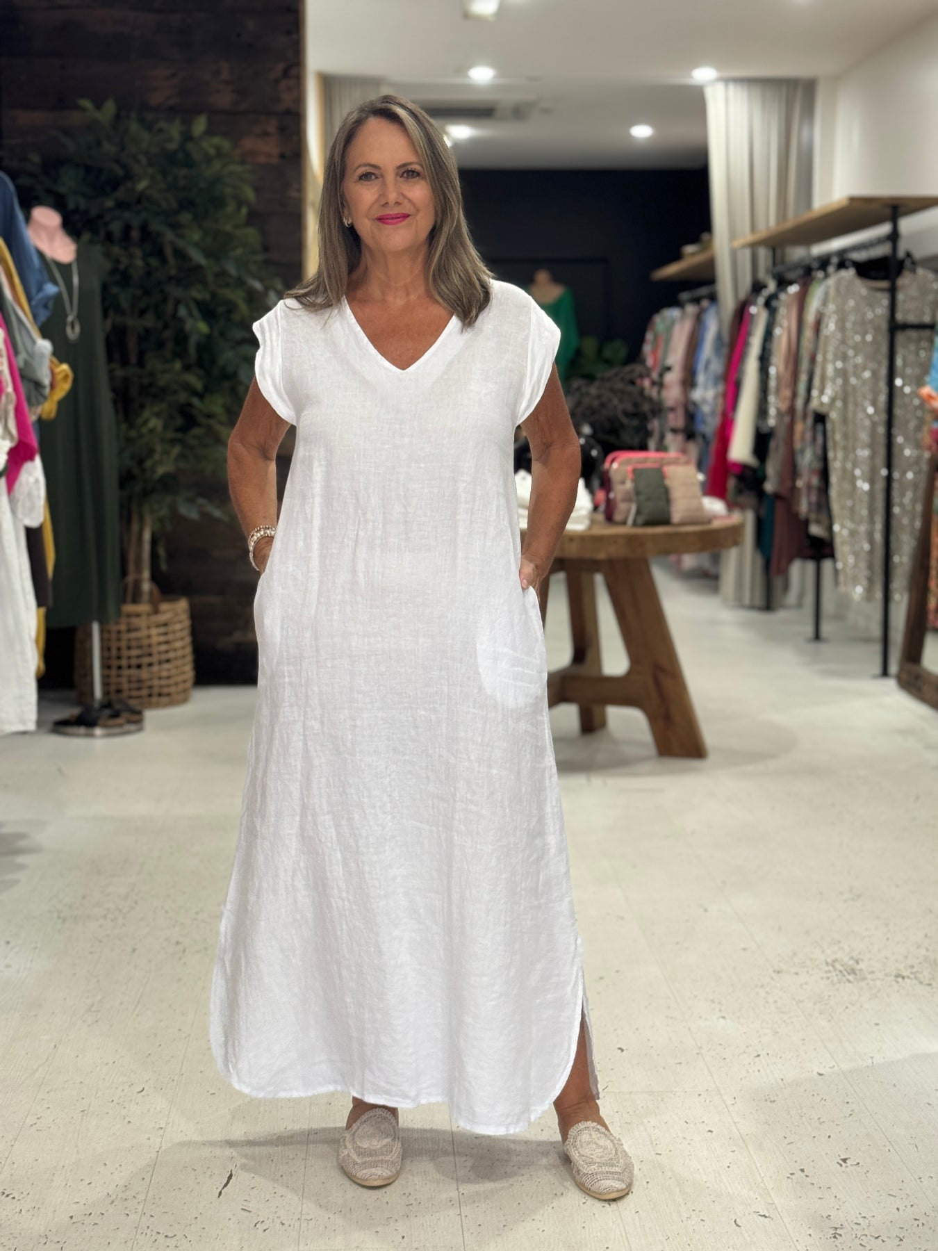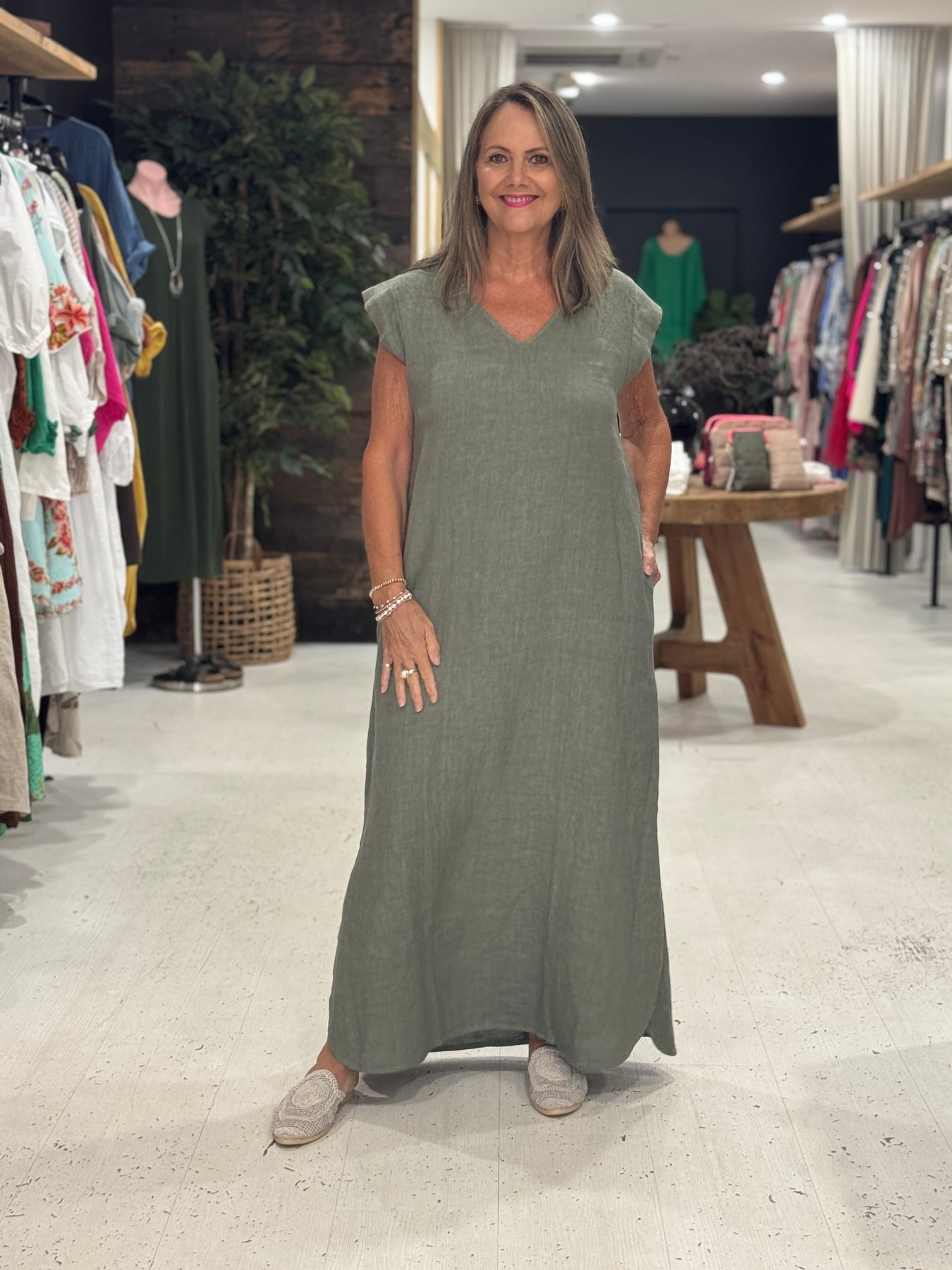 The Luna Maxi Dress combines Italian linen craftsmanship with thoughtful design details that flatter and move with you.