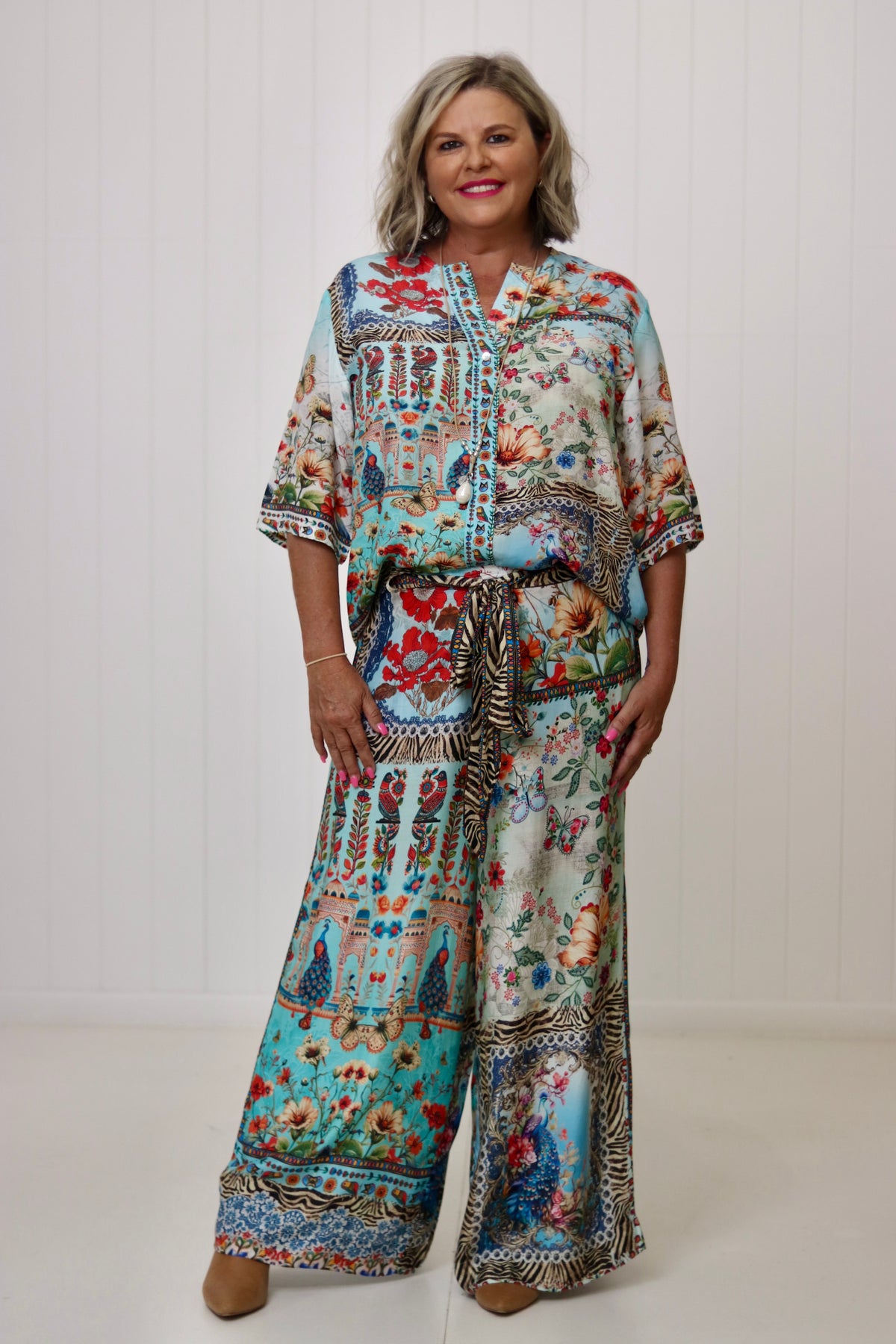 Crafted from luxuriously soft fabric, this blouse features a captivating Moroccan-inspired print that elevates any wardrobe.