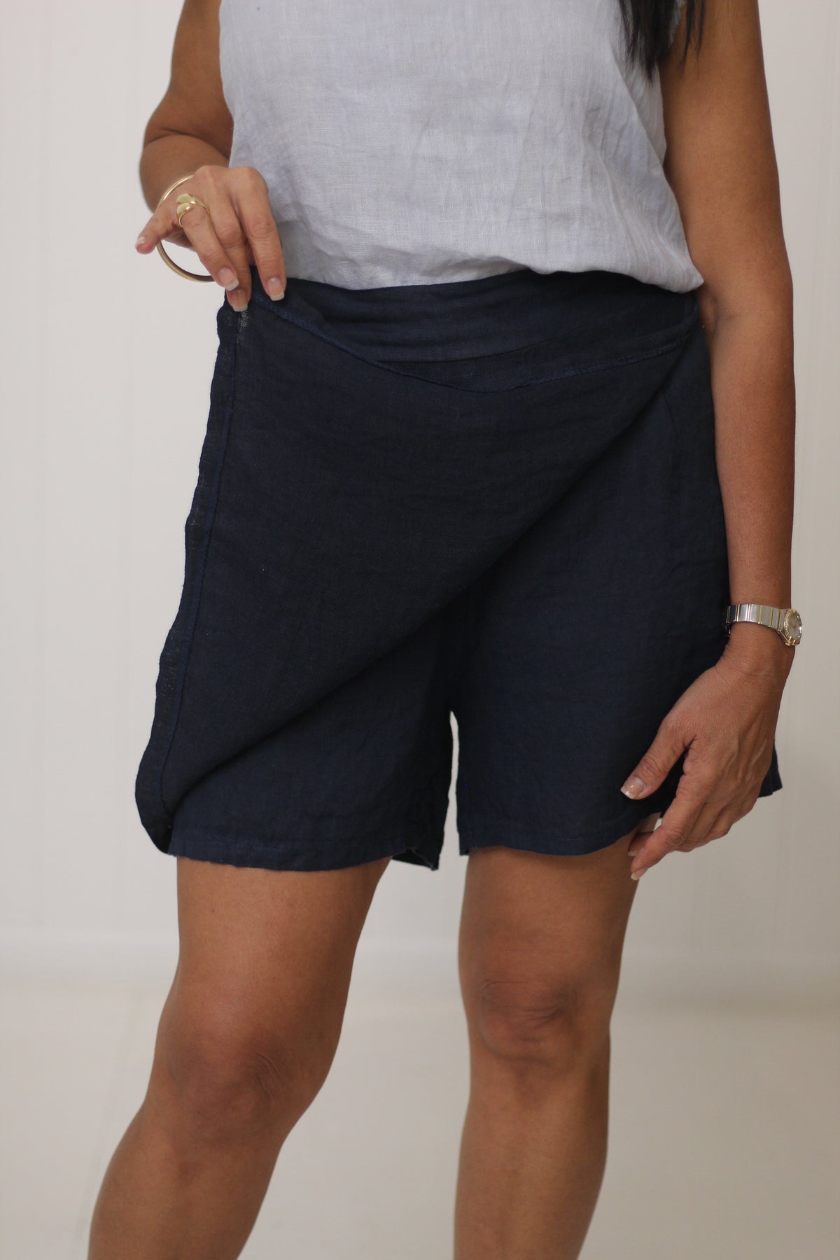 Drina is size 8 and is wearing size SM. She has styled the Stacey Skort with our Raw Edge Cami.