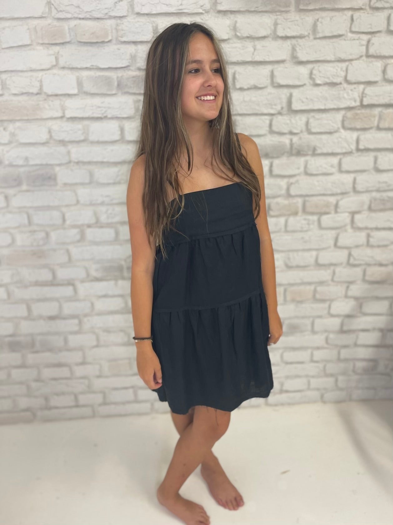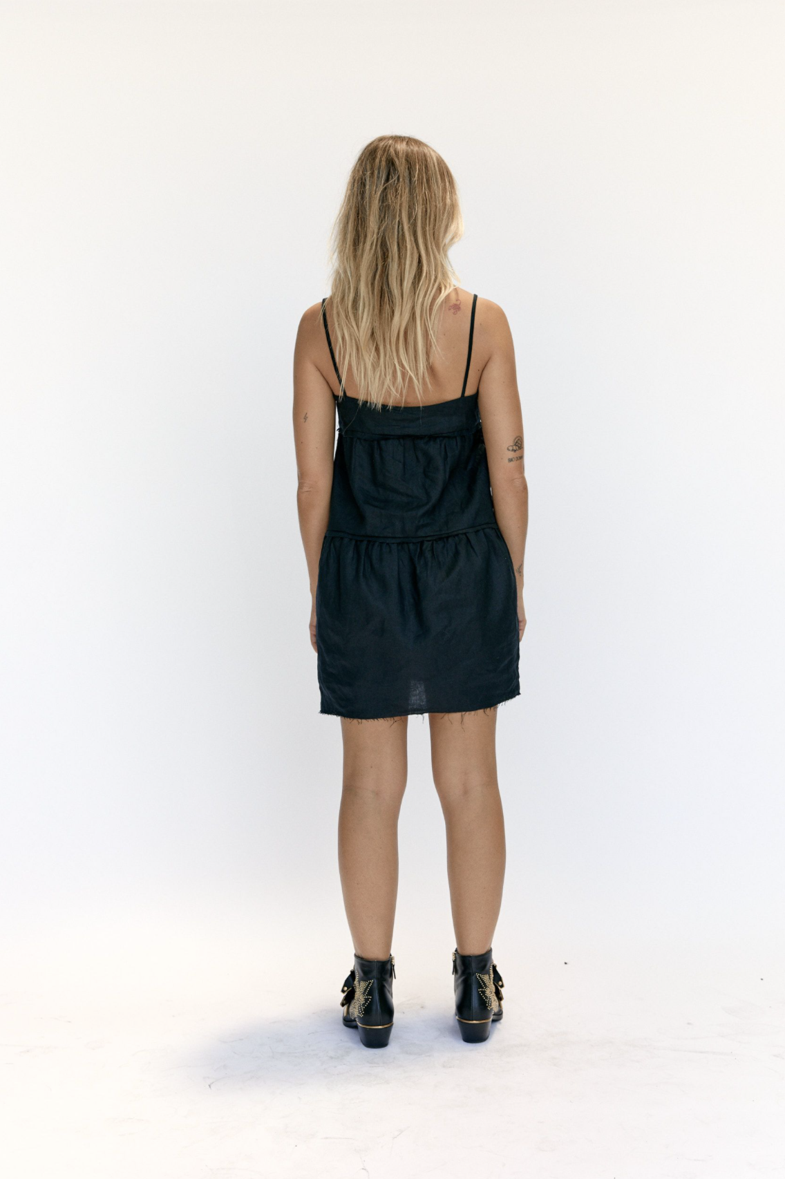 The Mini Elsa Noir, our short version of the Elsa is a beautifully crafted 100% soft linen dress. Designed for comfort and elegance, it features gathered tiers with exposed raw hems that are designed to subtly fray over time for a unique, lived-in look. The straight neckline and delicate rouleau straps add a touch of sophistication, making it perfect for warm-weather dressing. Available in size 6 - 16, this piece is locally designed and proudly made in Australia, celebrating quality craftsmanship and timeless appeal.