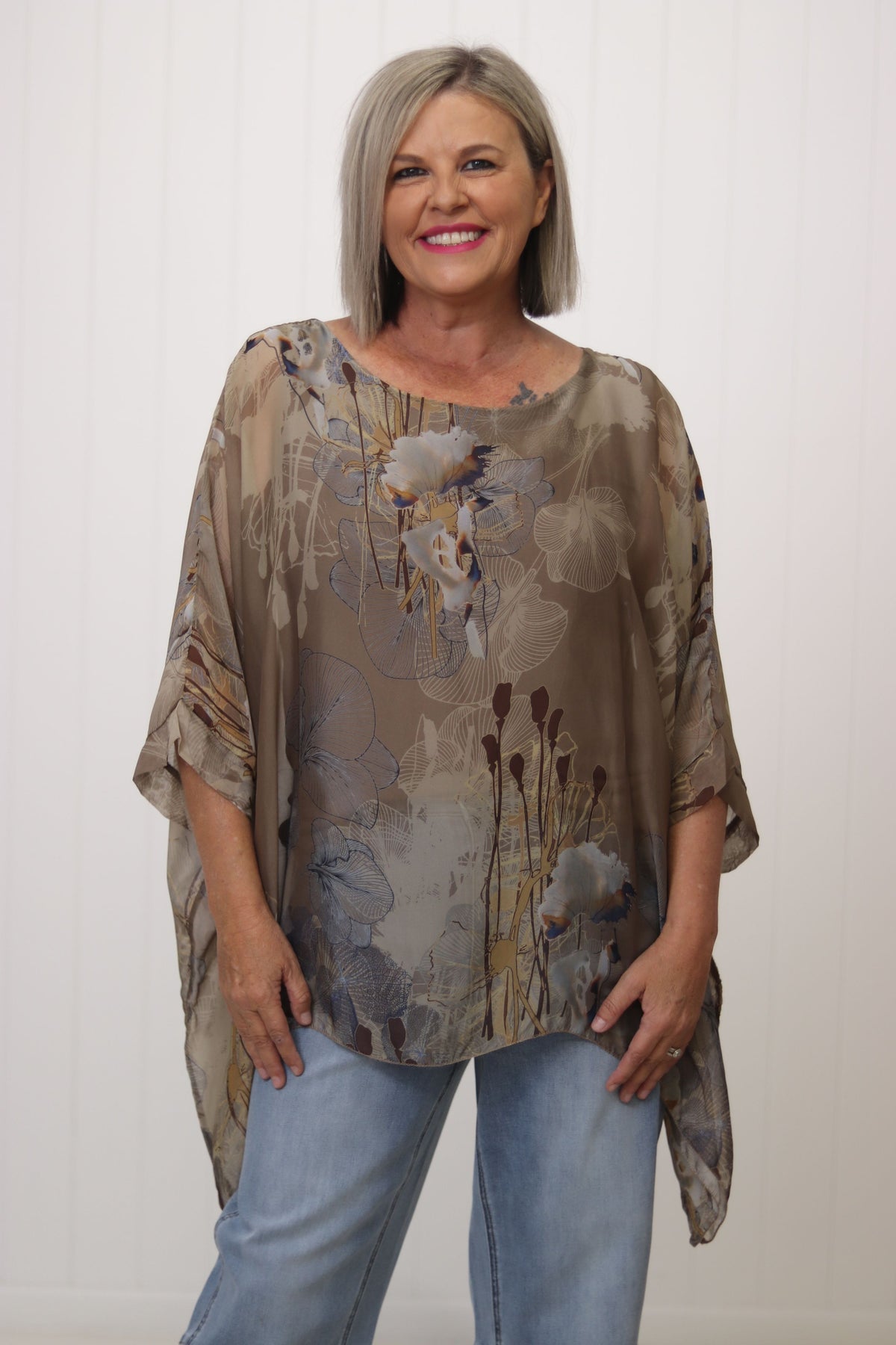 Elevate your wardrobe with the Botanic Silk Top, a refined kaftan-style blouse crafted in Italy. Featuring luxurious silk blended with viscose for a soft, breathable feel, this blouse showcases elegant 3/4 length sleeves and a distinctive wavy hemline. The gorgeous botanic patterns add a sophisticated touch, making it versatile to dress up for special occasions or dress down for casual elegance. The interior blend of viscose and elastic ensures comfort and a flattering fit throughout the day.