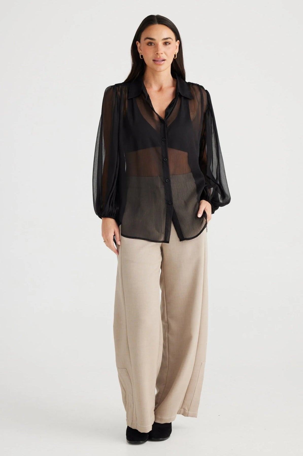 The Eden Shirt is stunning, crafted from lightweight and soft chiffon, it features a classic shirt collar and front button stand for effortless style. The back yoke showcases a beautiful lattice weave, while the long sleeves end in elasticated cuffs for a comfortable fit. Spoil yourself with this versatile and chic piece.