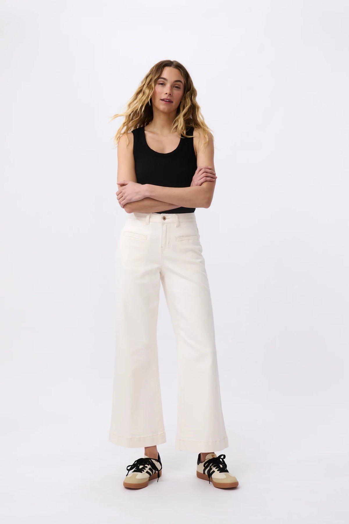 Channel chic 70’s style. A modern twist on the classic wide-legged jean, the Freya features a mid/high rise that’s fitted at the hips with a relaxed, wide leg that flares at the knee. Works so well with our classic cotton tees and a pair of boots or sandals.