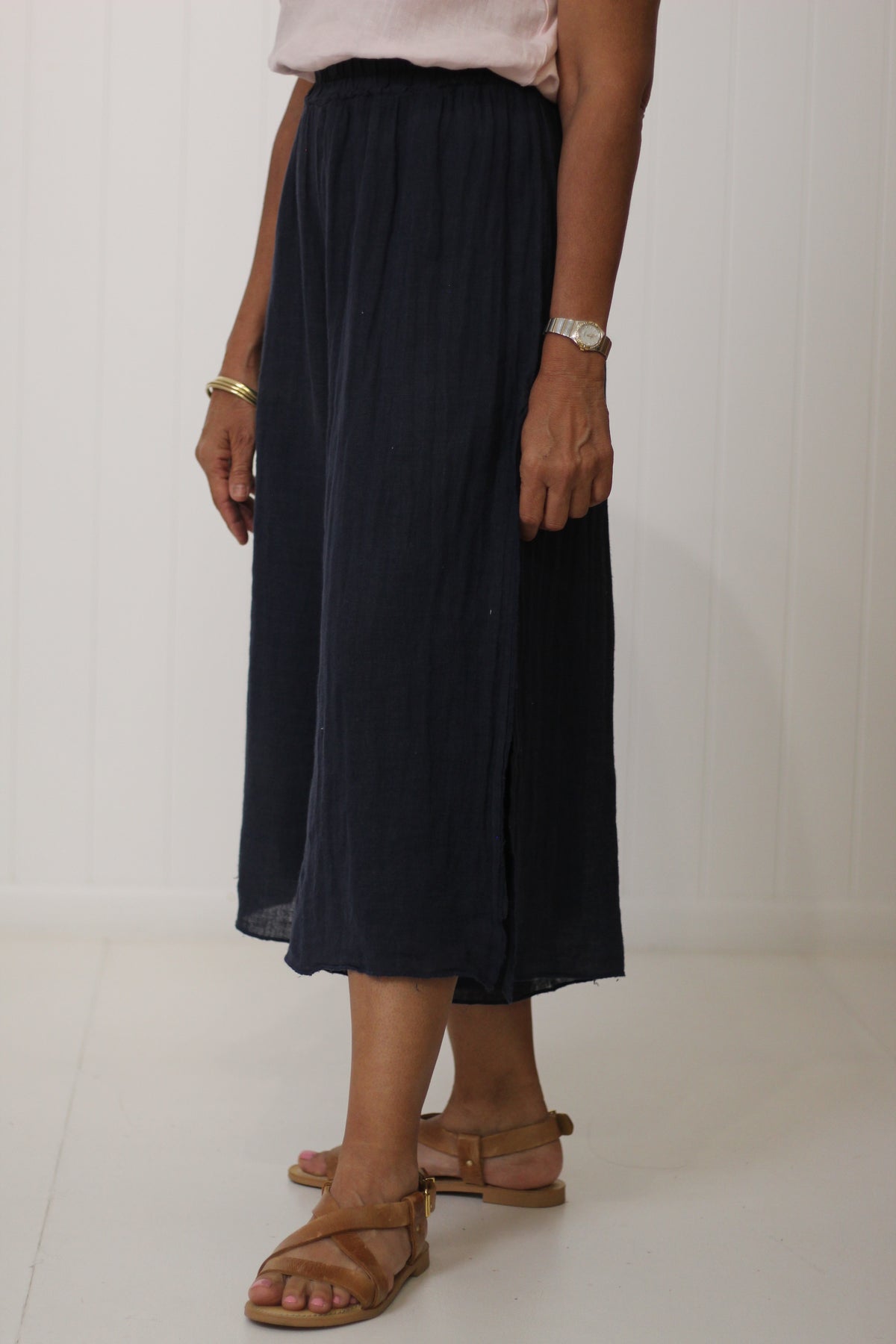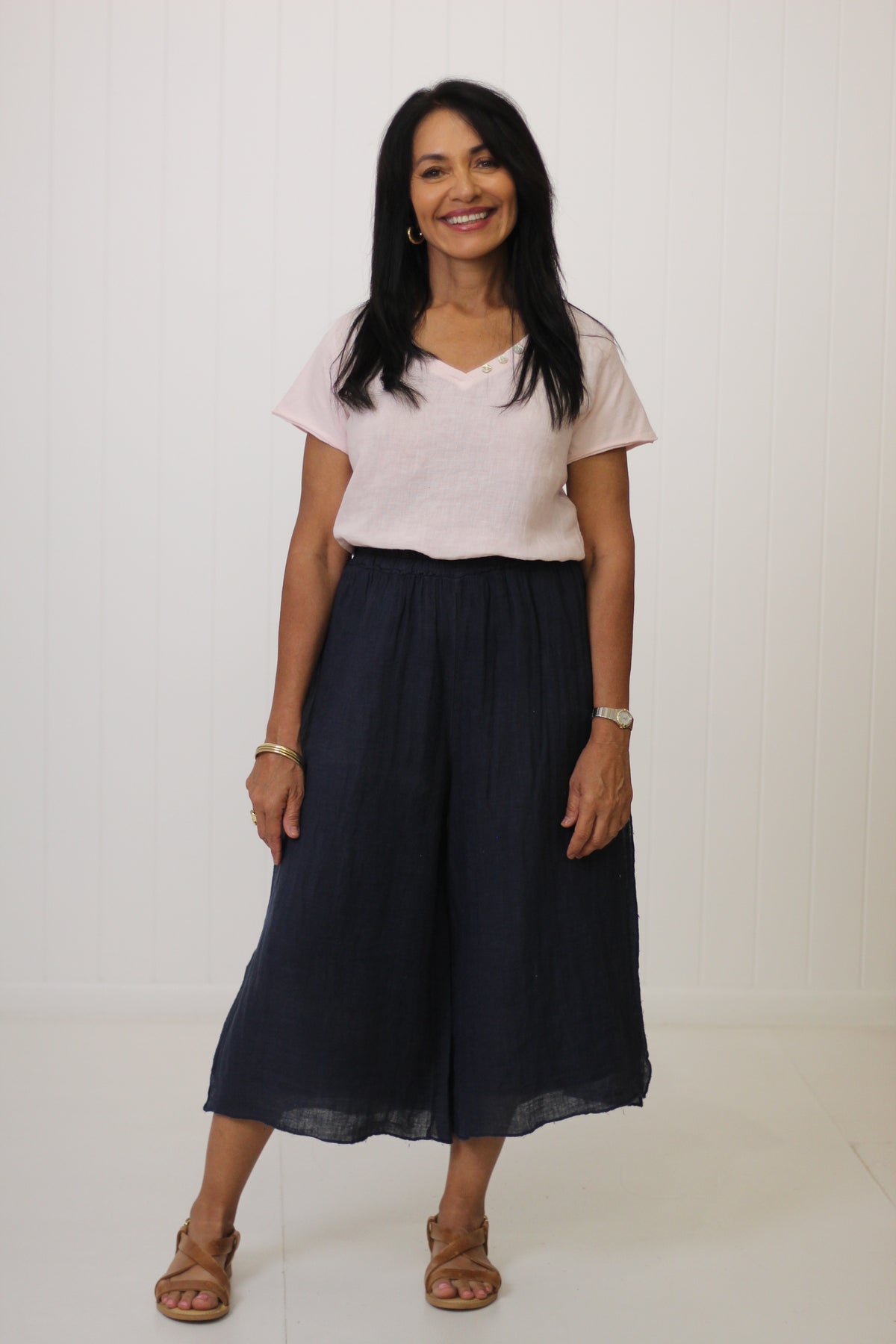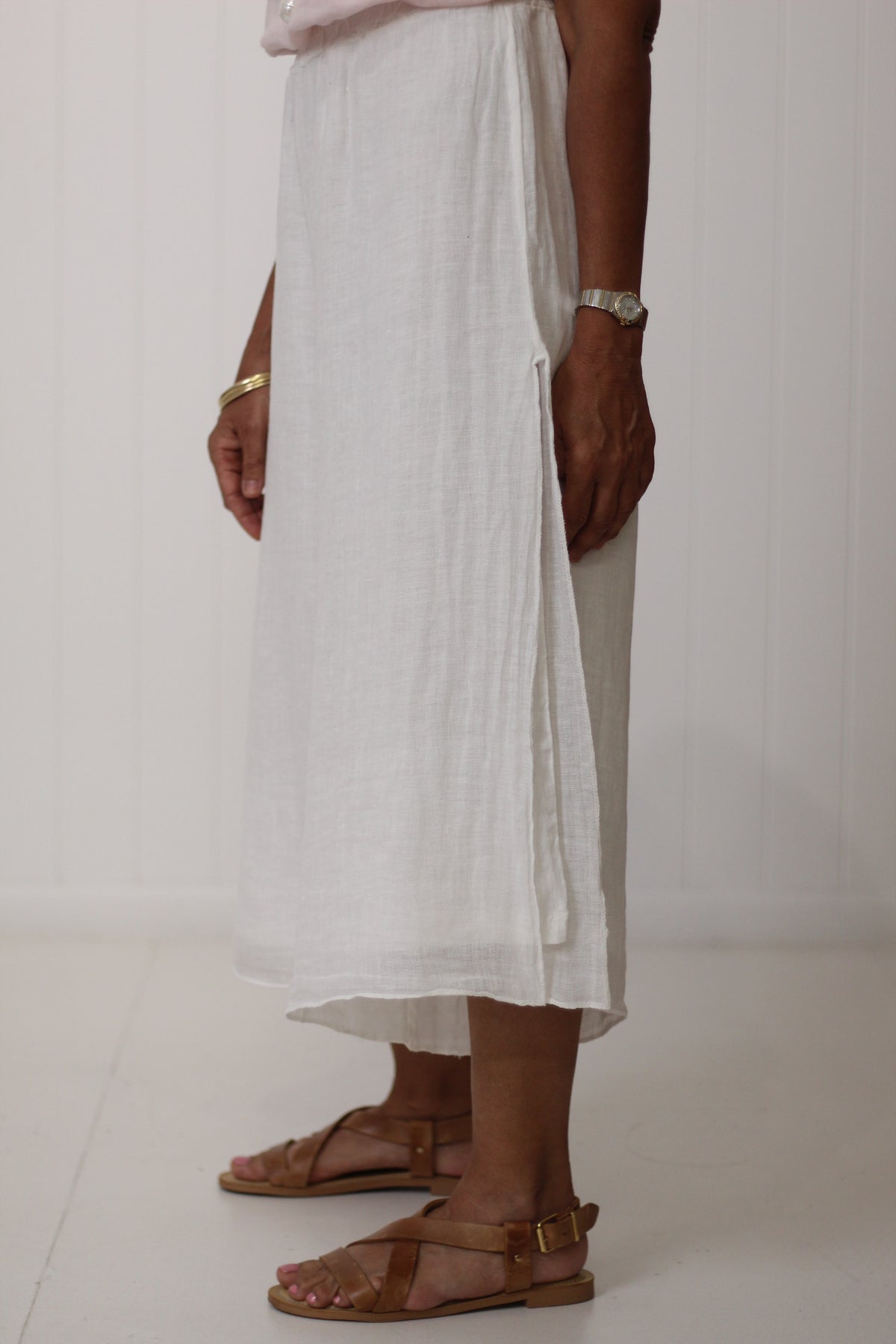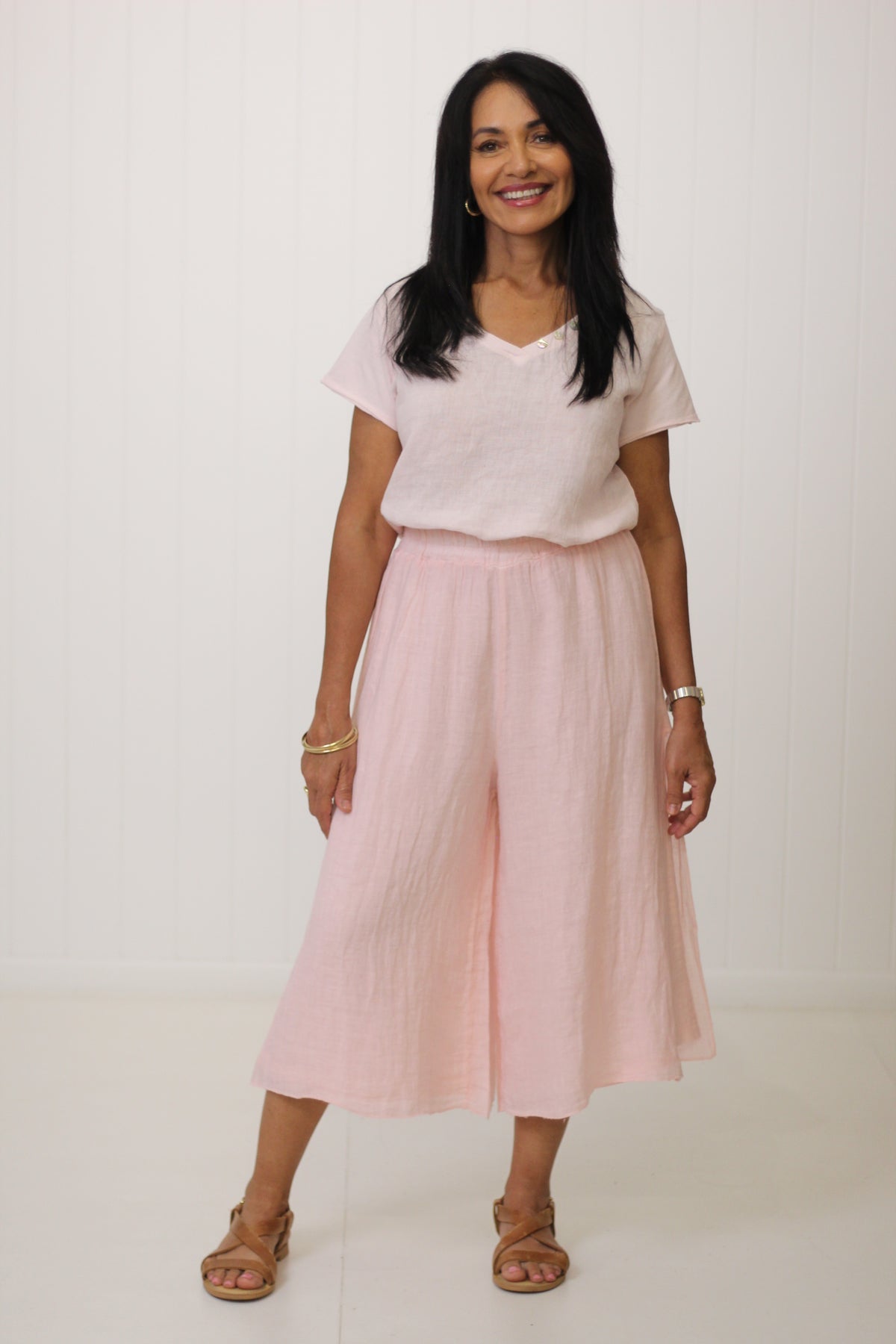 Step into summer with the stylish Hope Pant, crafted from lightweight linen for effortless comfort. These wide-leg, cropped pants offer a feminine, flowy silhouette, complemented by a soft gauze overlay that adds a touch of elegance and texture. Designed for both style and comfort, they feature convenient side pockets—because who doesn’t love pockets? Perfectly paired with any of our chic Sweet Charlotte Studio tops for a look that’s as fashionable as it is comfortable.