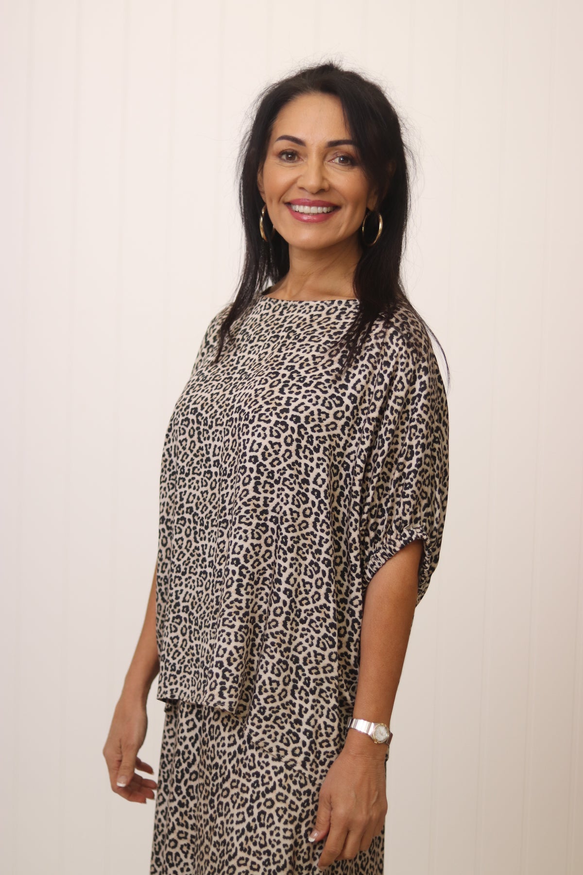 Our best-selling Kristie Top is now in Luxe Viscose Leopard. The stunning viscose fabric adds a touch of glamour to any occasion. Dress it up or down for effortless elegance.