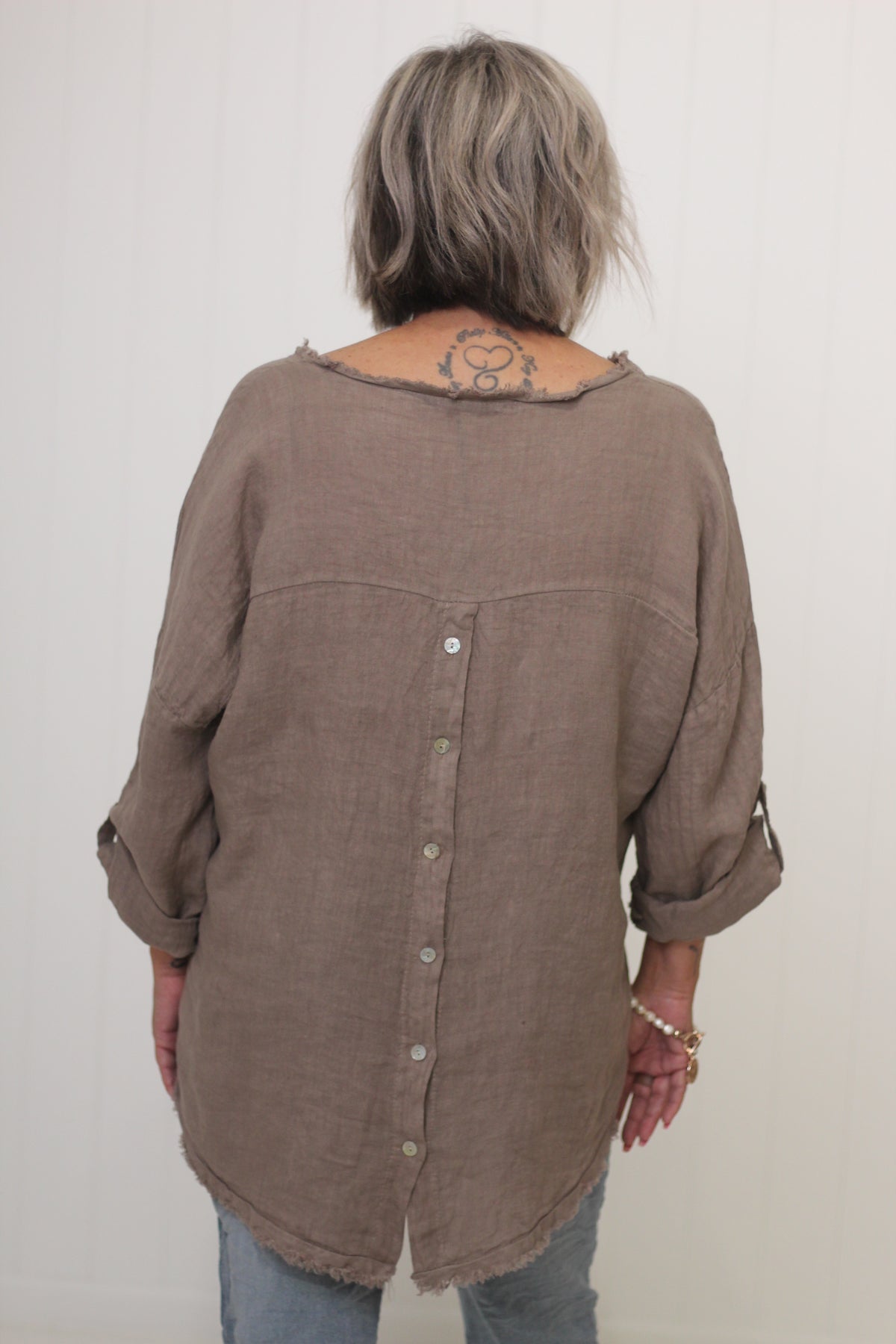 Crafted with 100% linen, its flattering hi-low hemline provides excellent coverage while the button back feature adds a great point of difference.