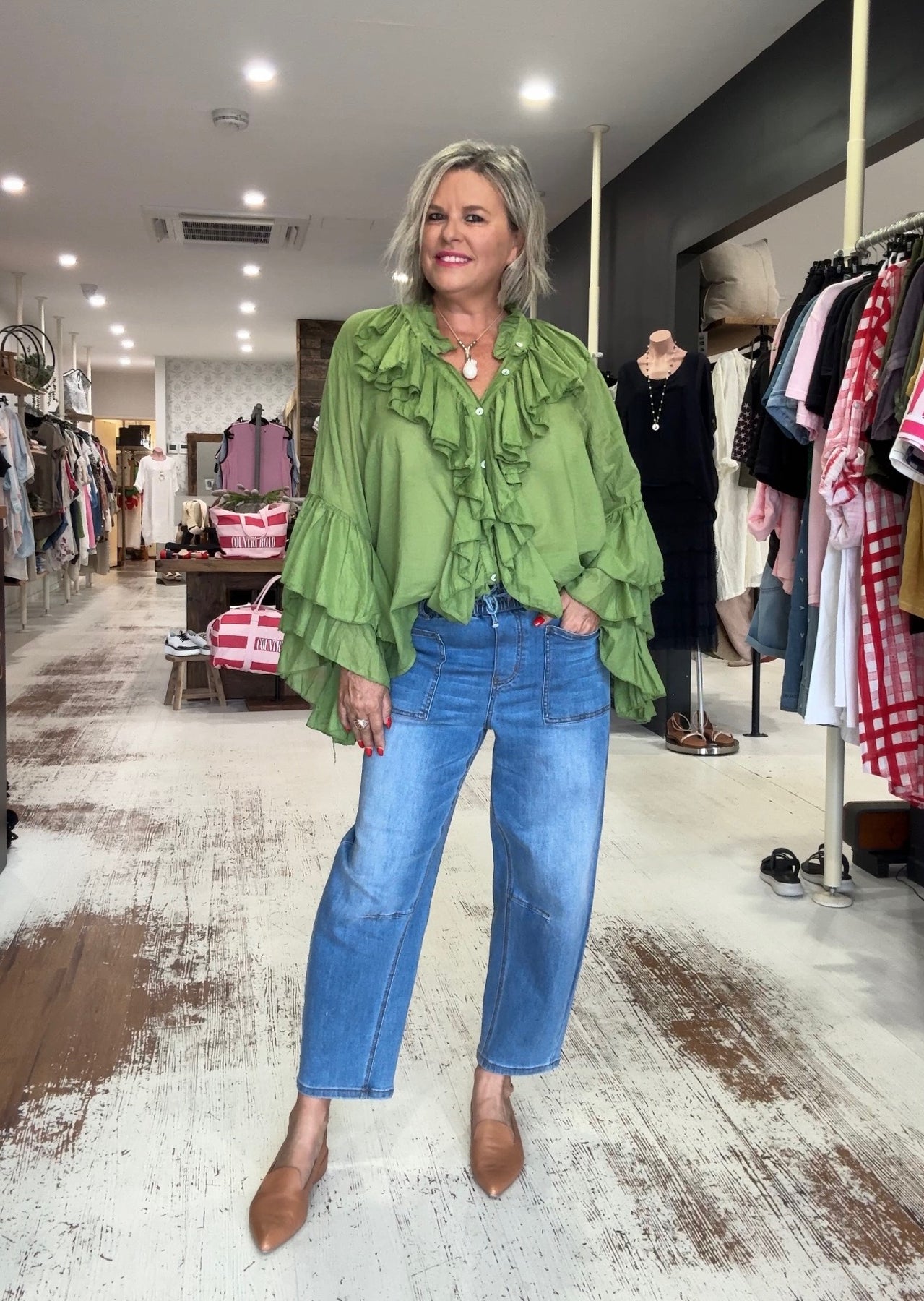 Shown here in green and white with the Leo eans The burgundy with the gorgeous Bestie Jeans
