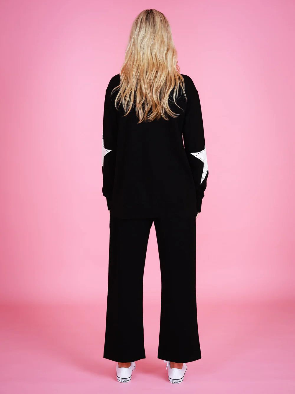 Step up your lounge look with this 100% cotton French Terry Crewneck. The Peyton Twin Star Sweeter features a relaxed fit with rib knit trim. Signature details include a drop-tail hem, vented sides, and fun graphic prints on the sleeves. Comfy, casual, and carefree - this piece has it all!