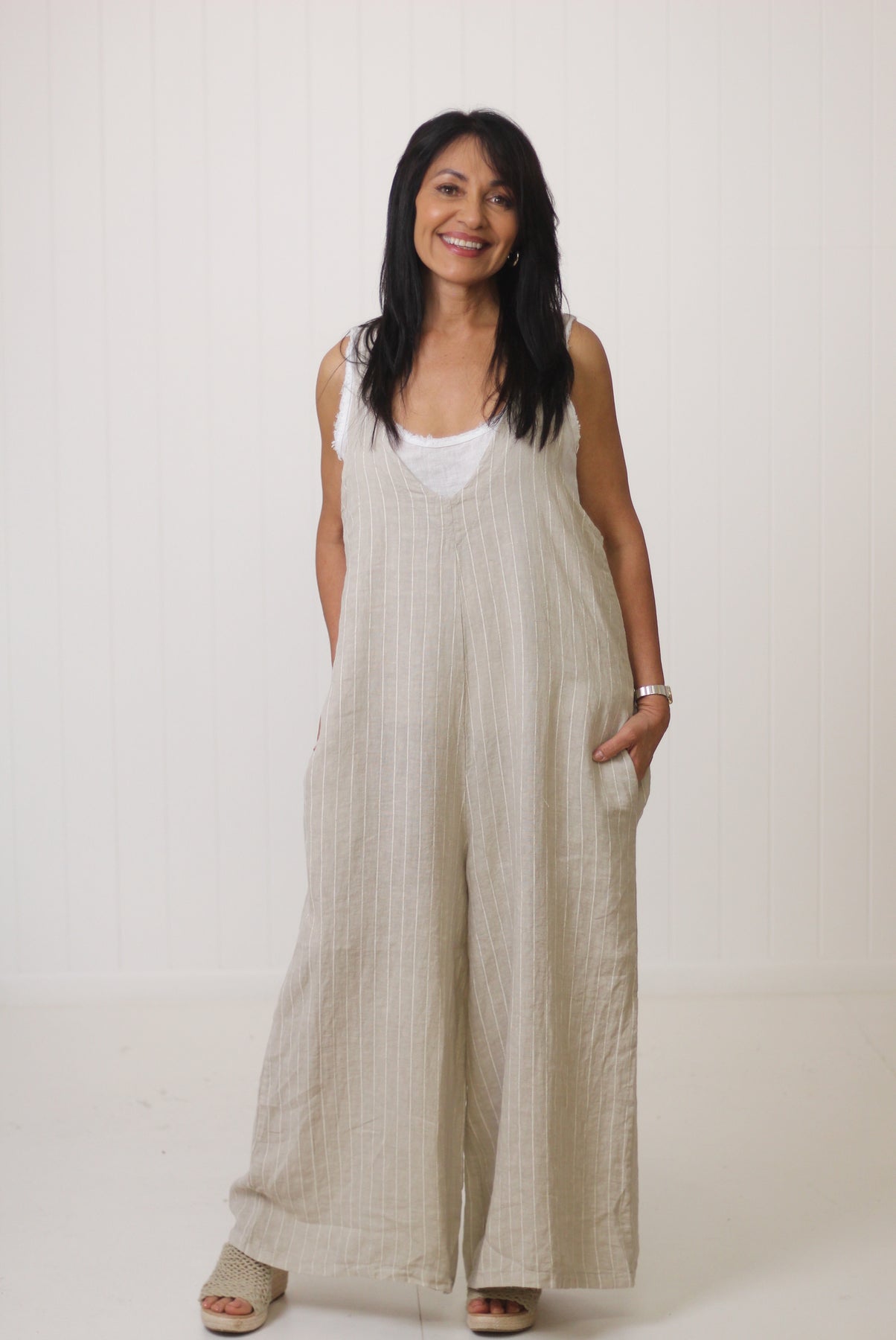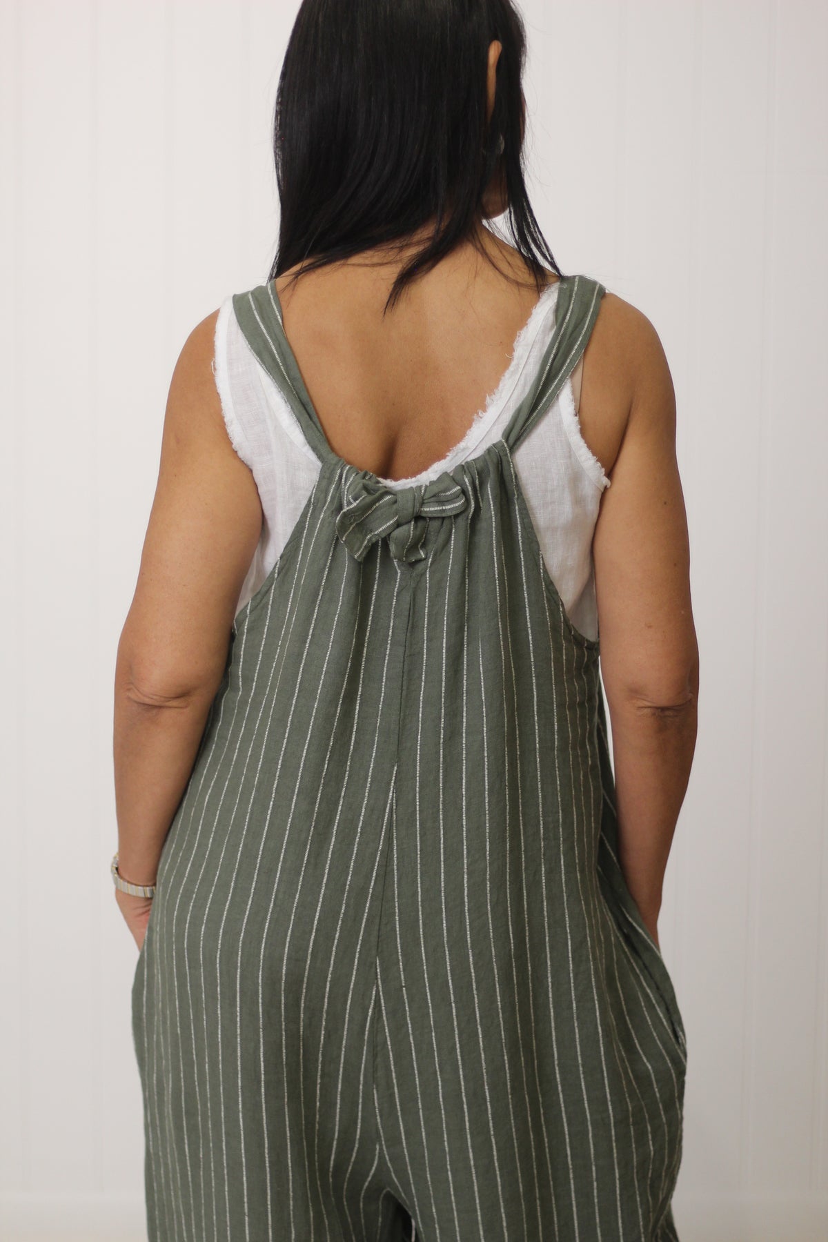 Expertly crafted from 100% linen, Salvatore Overall offer a low neckline and small bow feature tie up at the back to add a touch of femininity, while the flowy design ensures comfort and ease of movement. Complete with pockets, perfect for keeping essentials at hand.