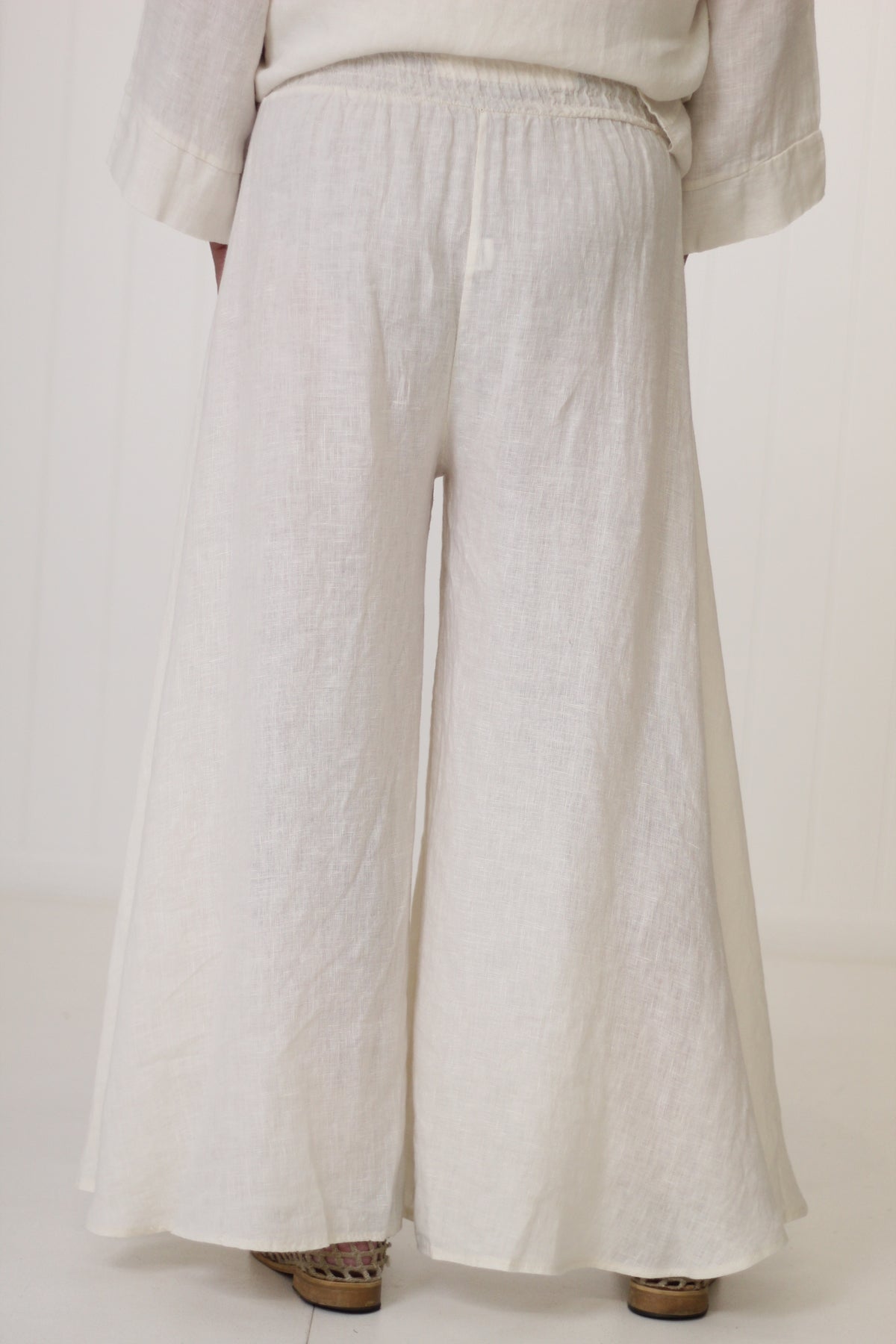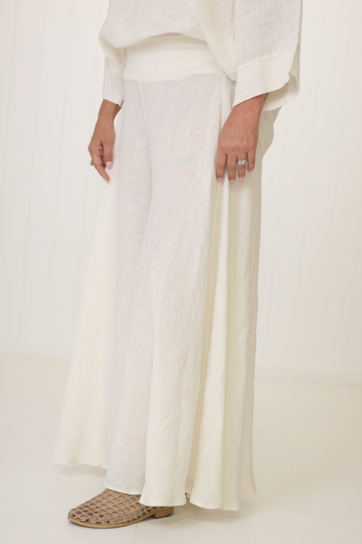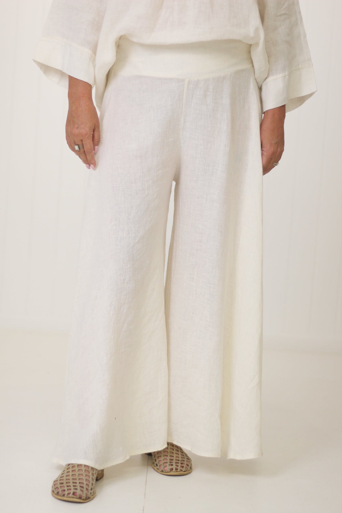 The Steffi Pant is a timeless pant, crafted from 100% linen for a lightweight and effortlessly comfortable feel. Designed with a wide-leg silhouette, it offers both freedom of movement and a sophisticated drape. The flat front provides a sleek finish, while the elasticated back ensures a perfect, flexible fit. Versatile and effortlessly chic, these luxurious pants are perfect for any occasion, from casual outings to elevated styling.