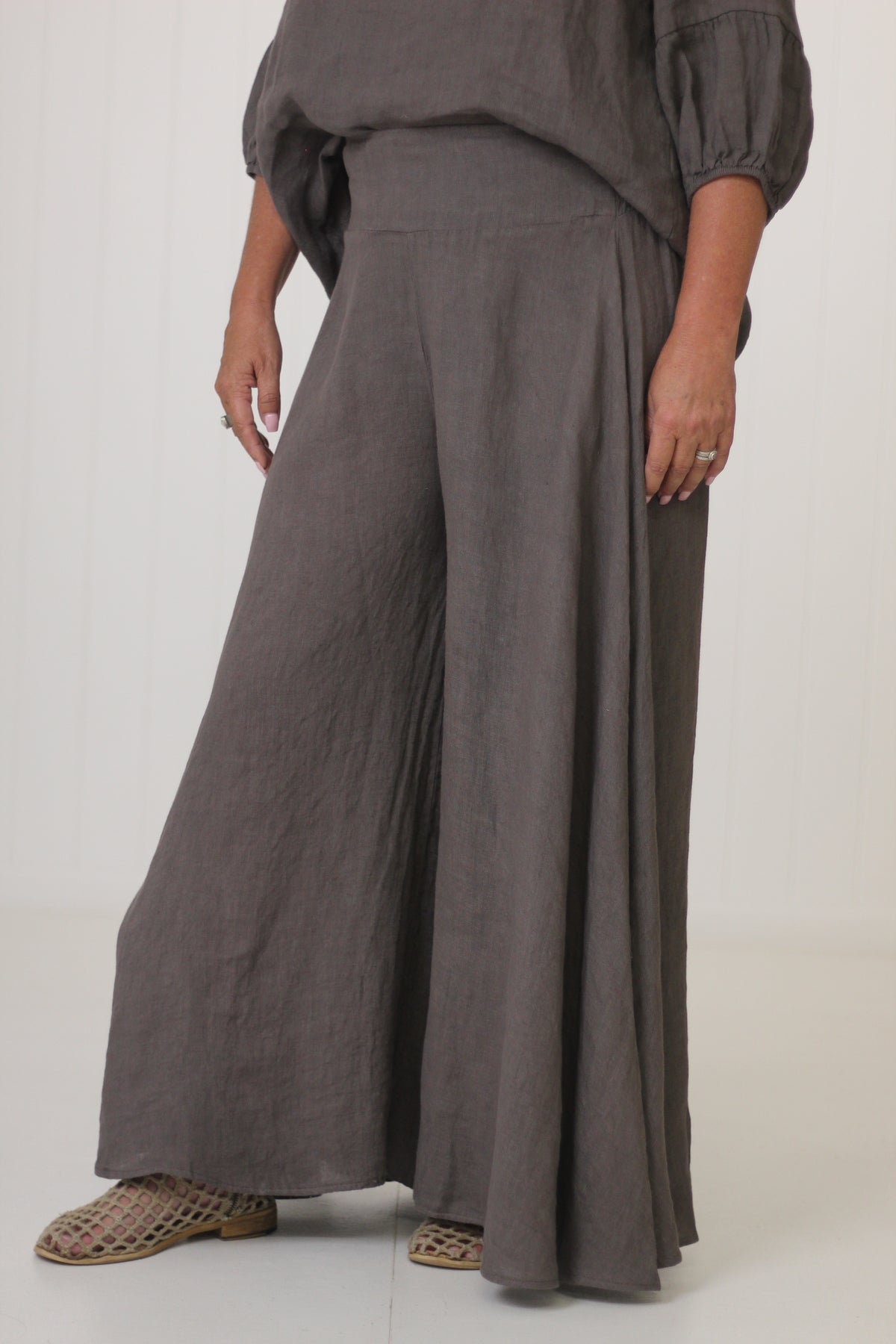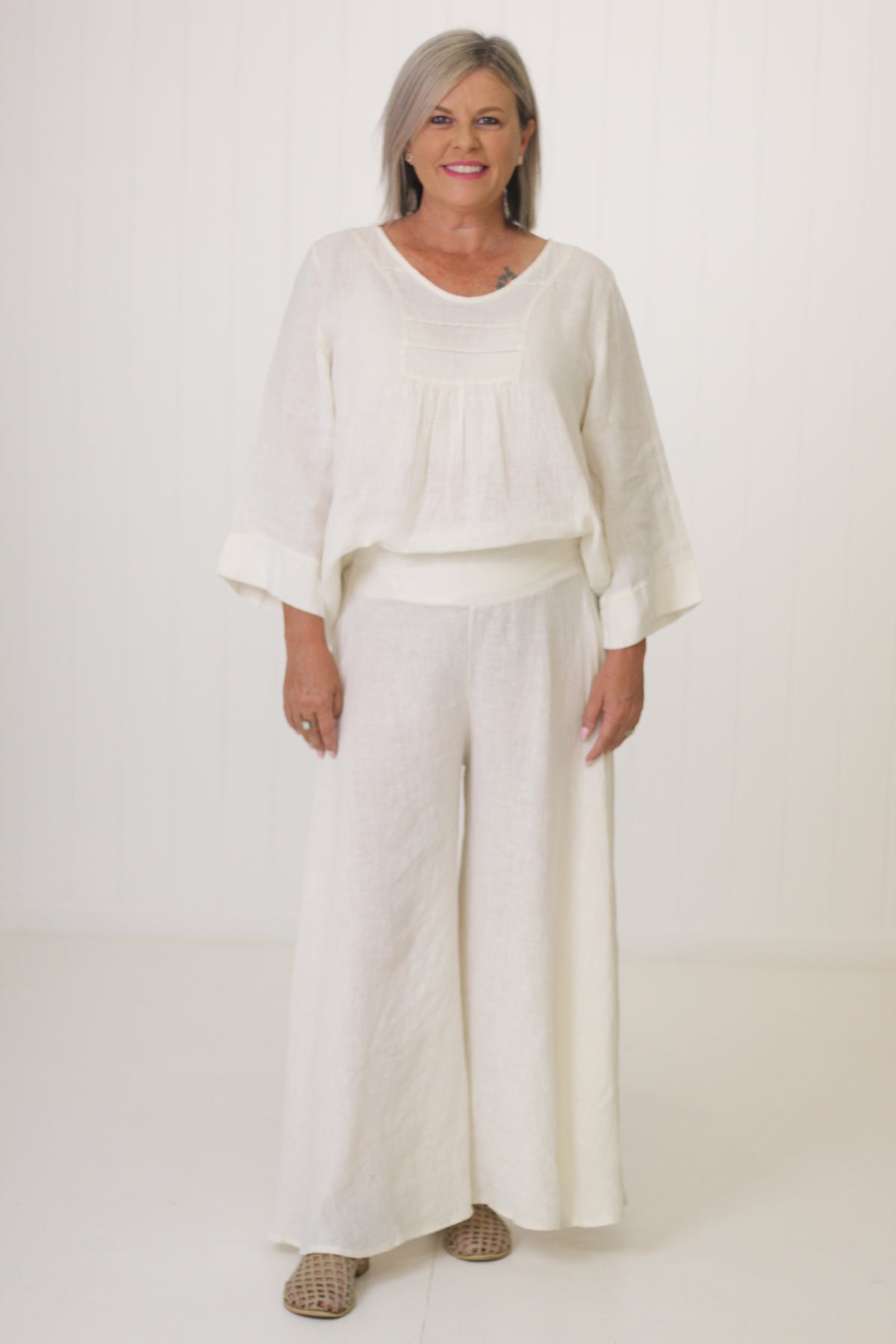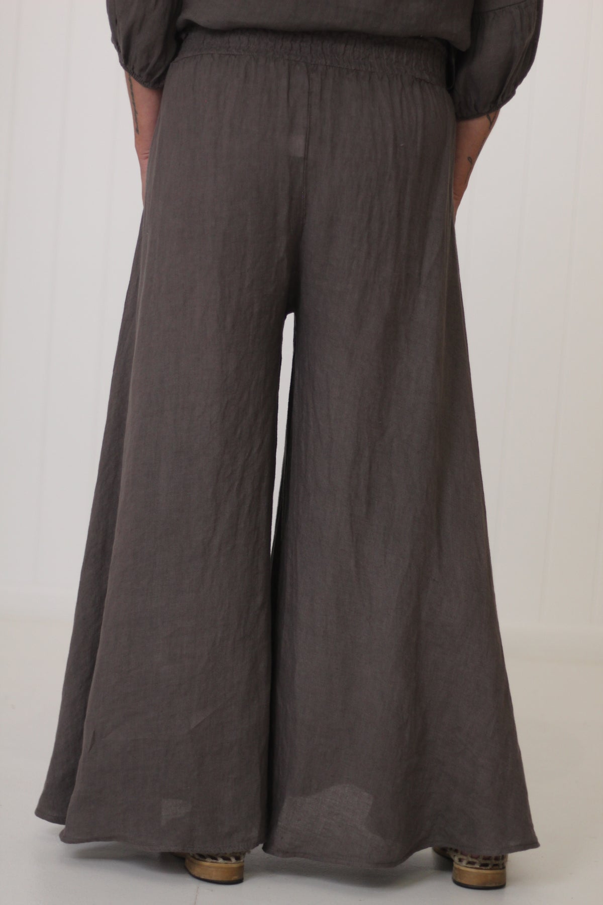 The Steffi Pant is a timeless pant, crafted from 100% linen for a lightweight and effortlessly comfortable feel. Designed with a wide-leg silhouette, it offers both freedom of movement and a sophisticated drape. The flat front provides a sleek finish, while the elasticated back ensures a perfect, flexible fit. Versatile and effortlessly chic, these luxurious pants are perfect for any occasion, from casual outings to elevated styling.