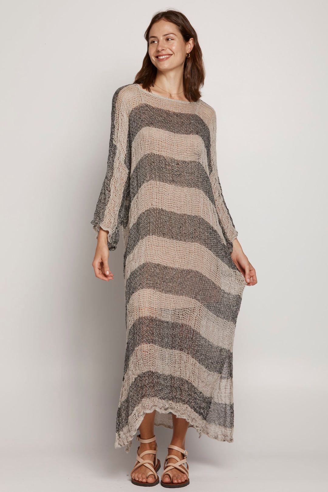 POSITANO SLEEVED KAFTAN NERO/NATURALE