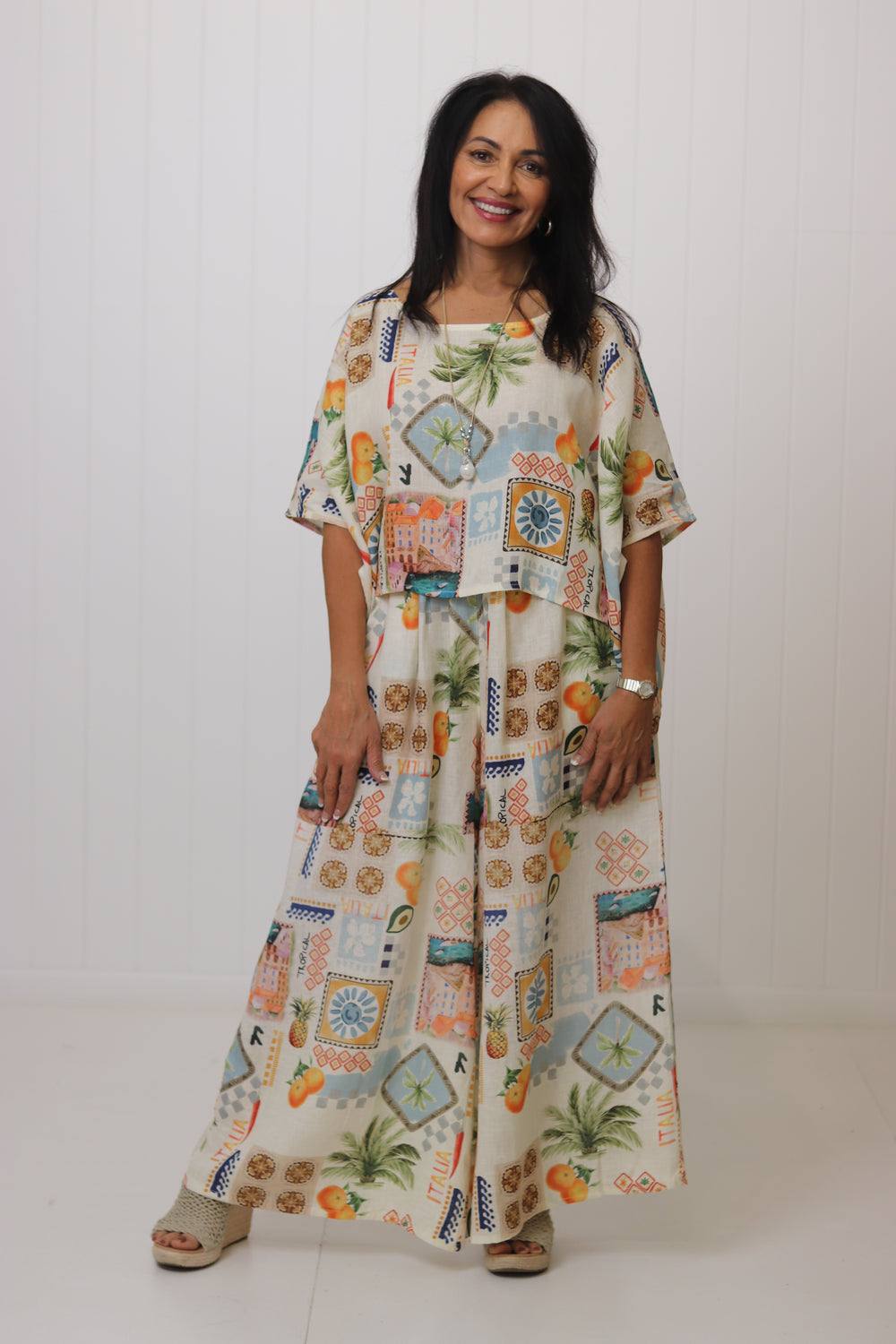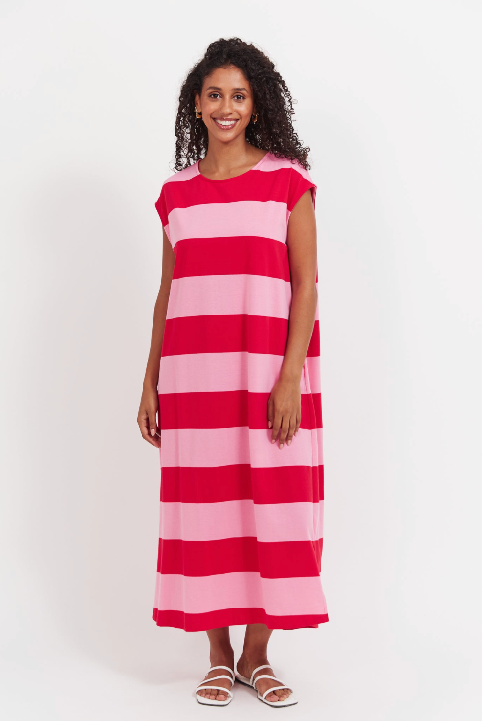 Positano Maxi Sleeved Netta Canapa Natural Stripe
