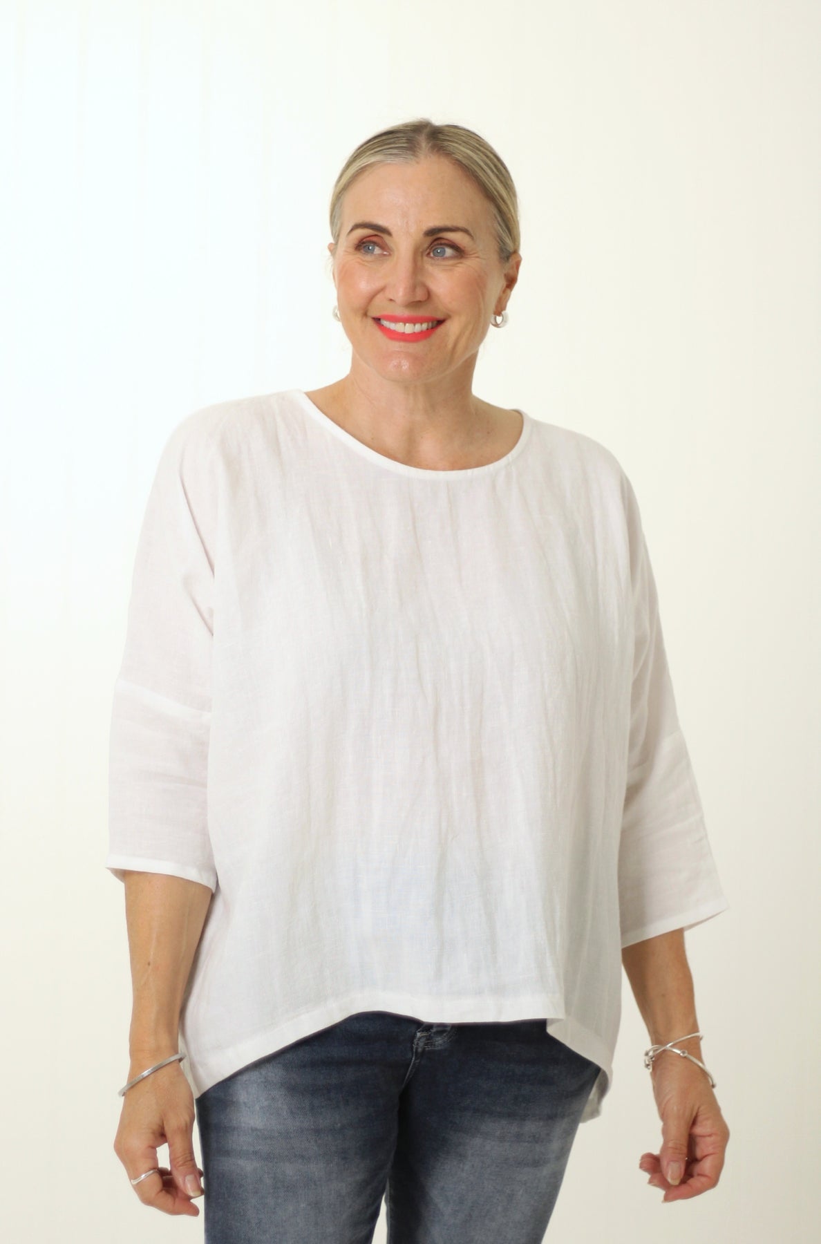 The Hinley Top with a longer sleeve! A customer favorite, now perfect for all seasons. Designed for effortless style and comfort, it features a classic round neckline, longer sleeves, and a chic longer back for a modern yet timeless look. Made from premium linen and proudly handmade in Australia, it pairs beautifully with the Avernal or Pearce Pants. Style it with a front tuck for added shape—a must-have in your wardrobe, so versatile.