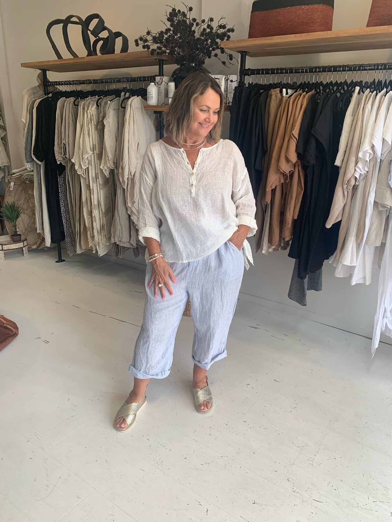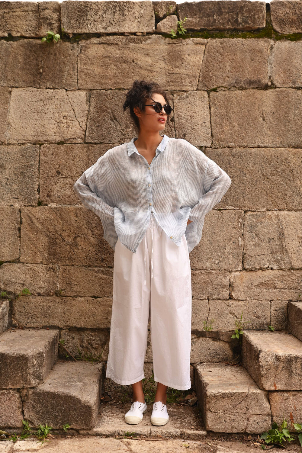 Our Remy Pants offer a relaxed and billowy silhouette, designed with a generous wide leg fit and an elasticated and smocked waistband for comfort without compromising on style. Remy also features deep side pockets.