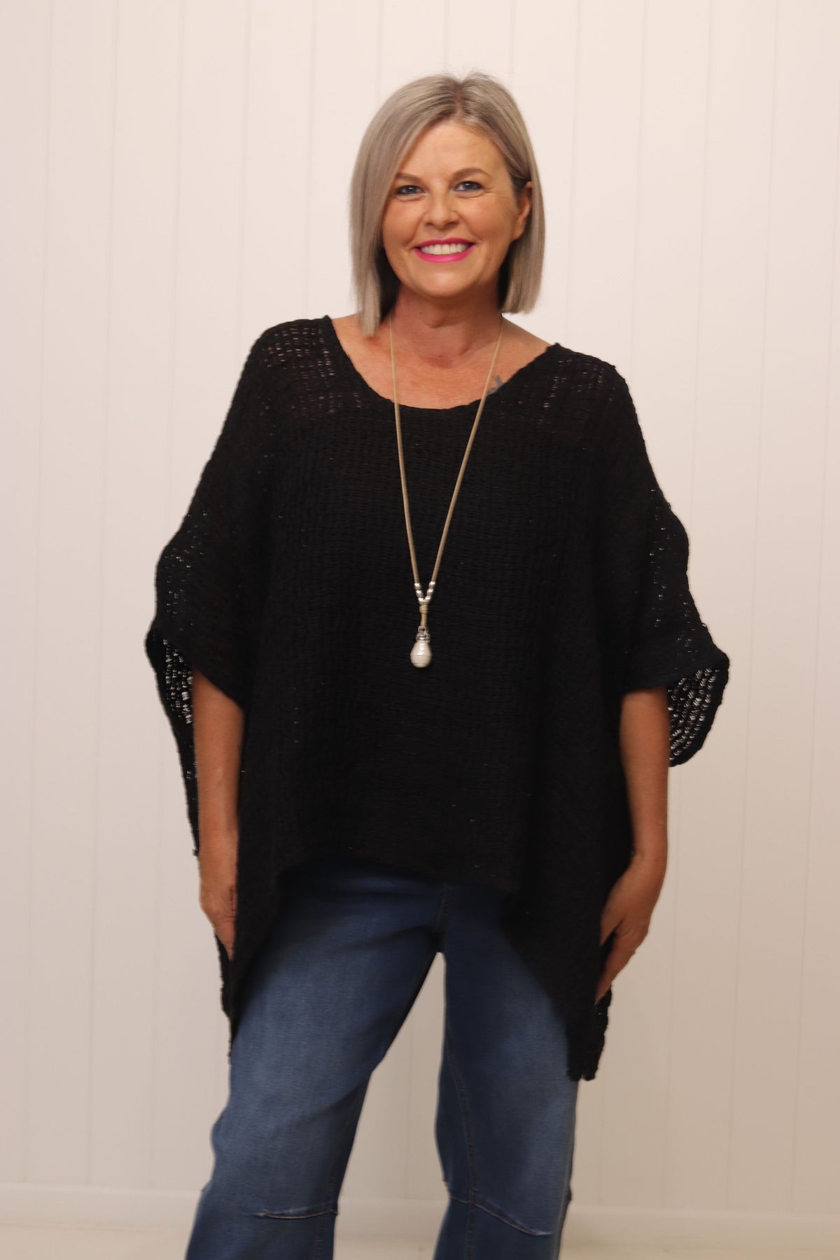- Oversized batwing silhouette for a relaxed fit