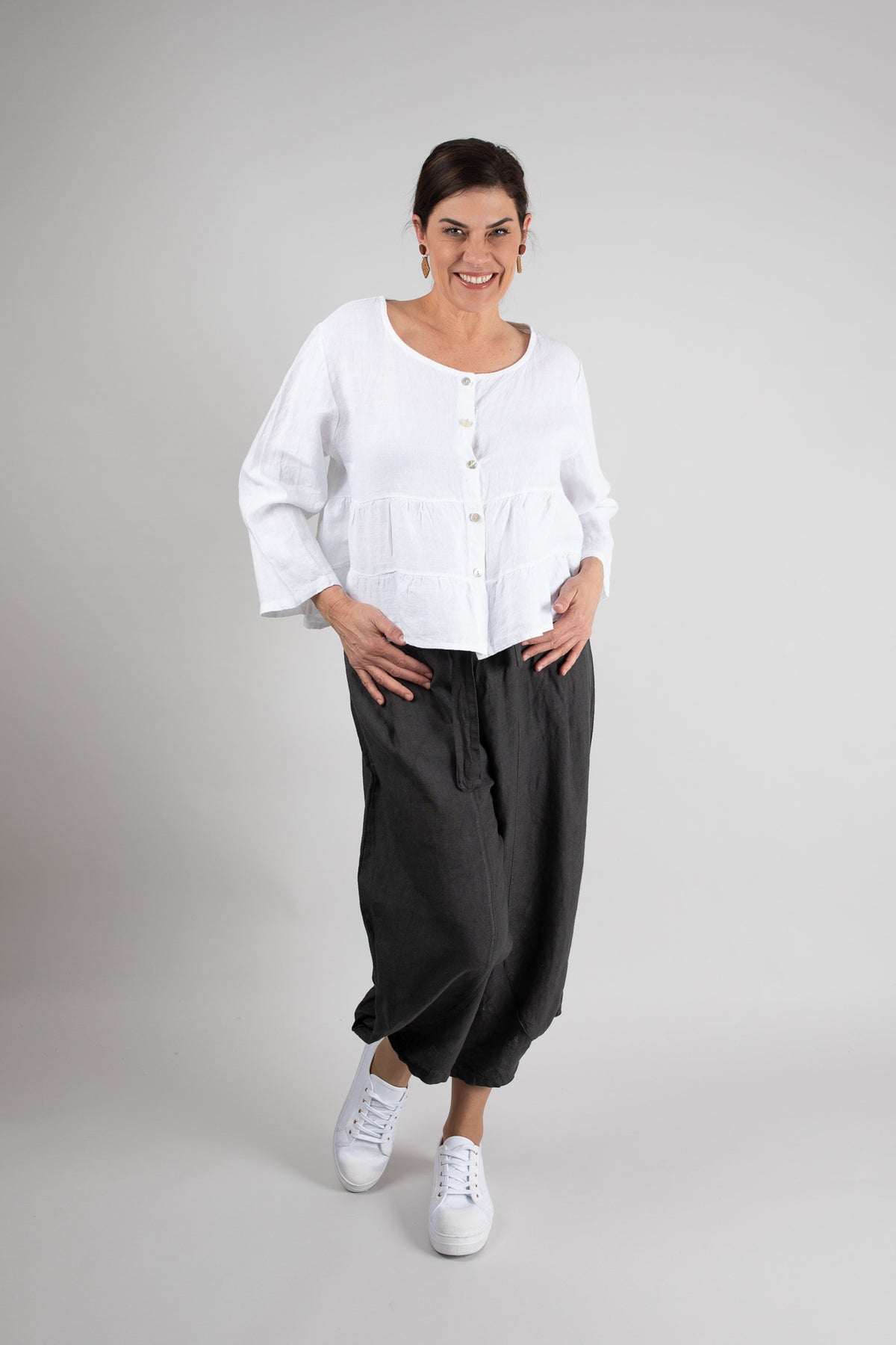 Fabulous worn with all styles of pants and skirts, can also be worn unbuttoned as a layering piece over a simple cami or linen tee!