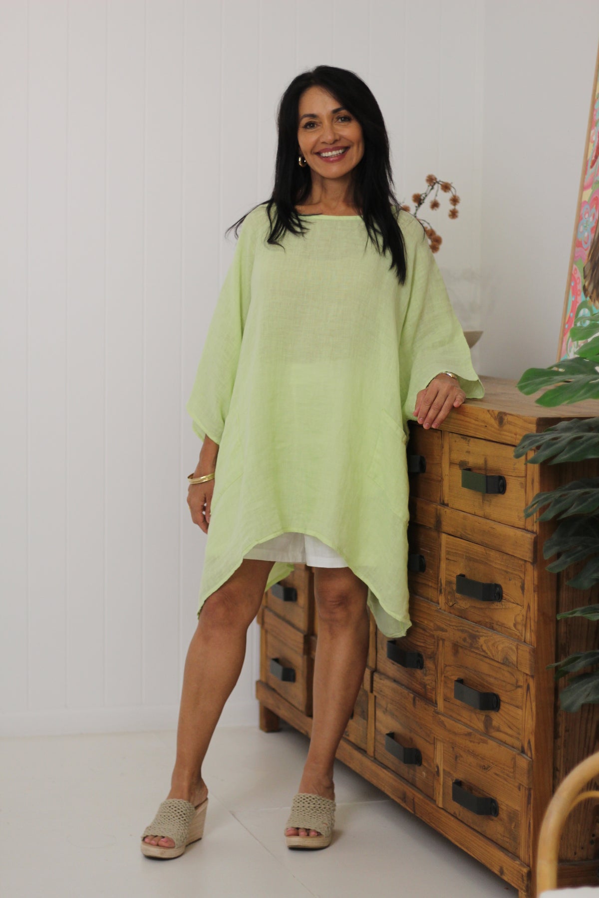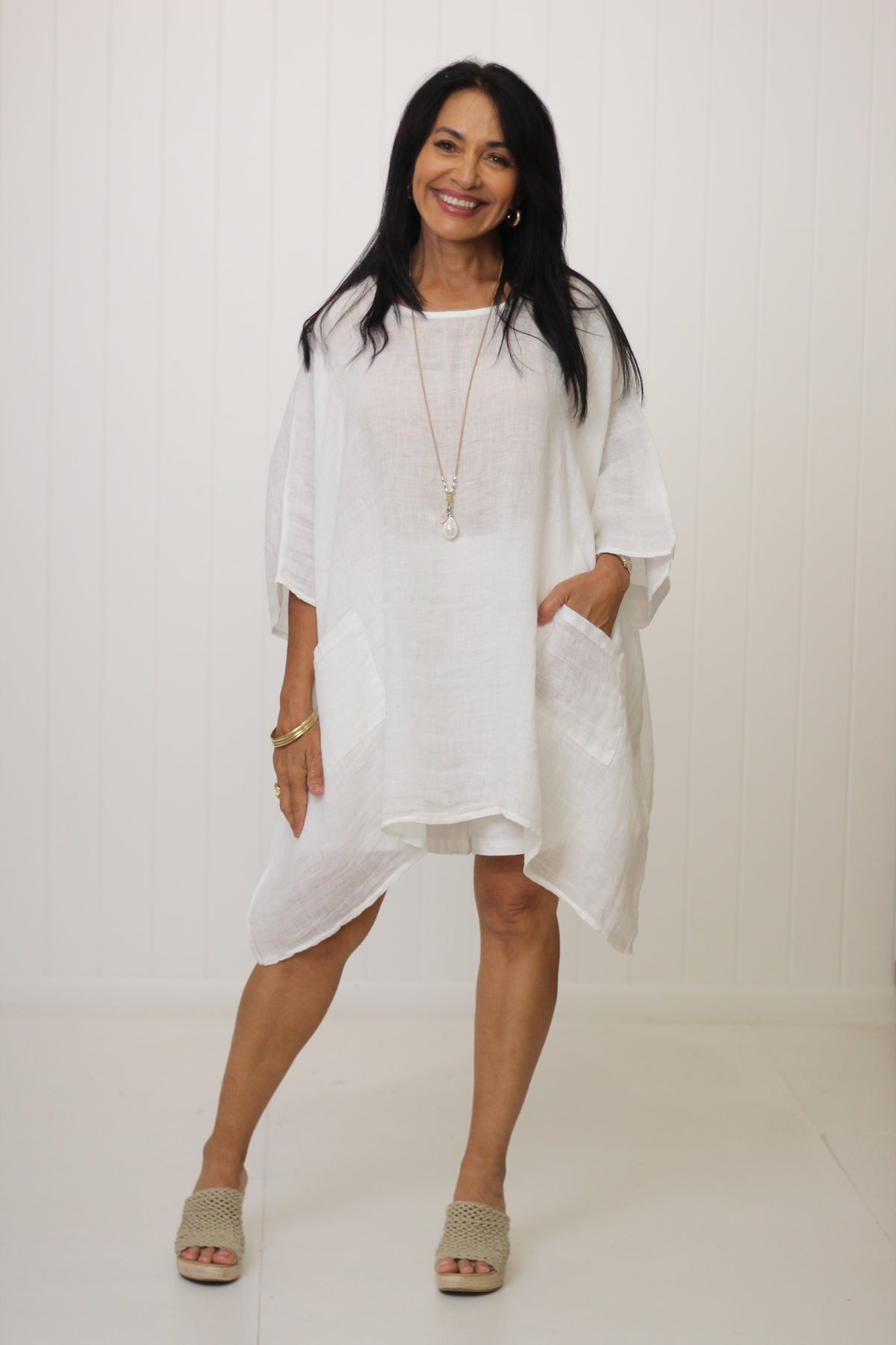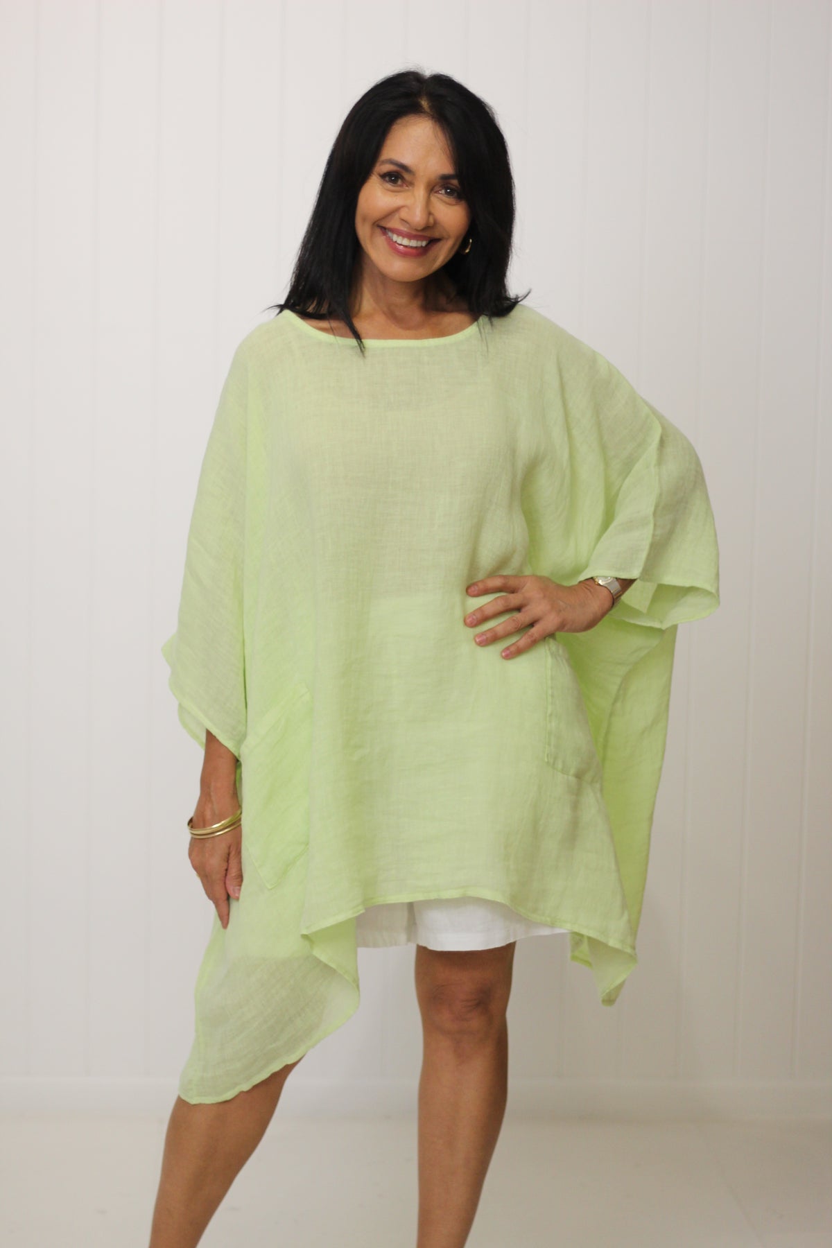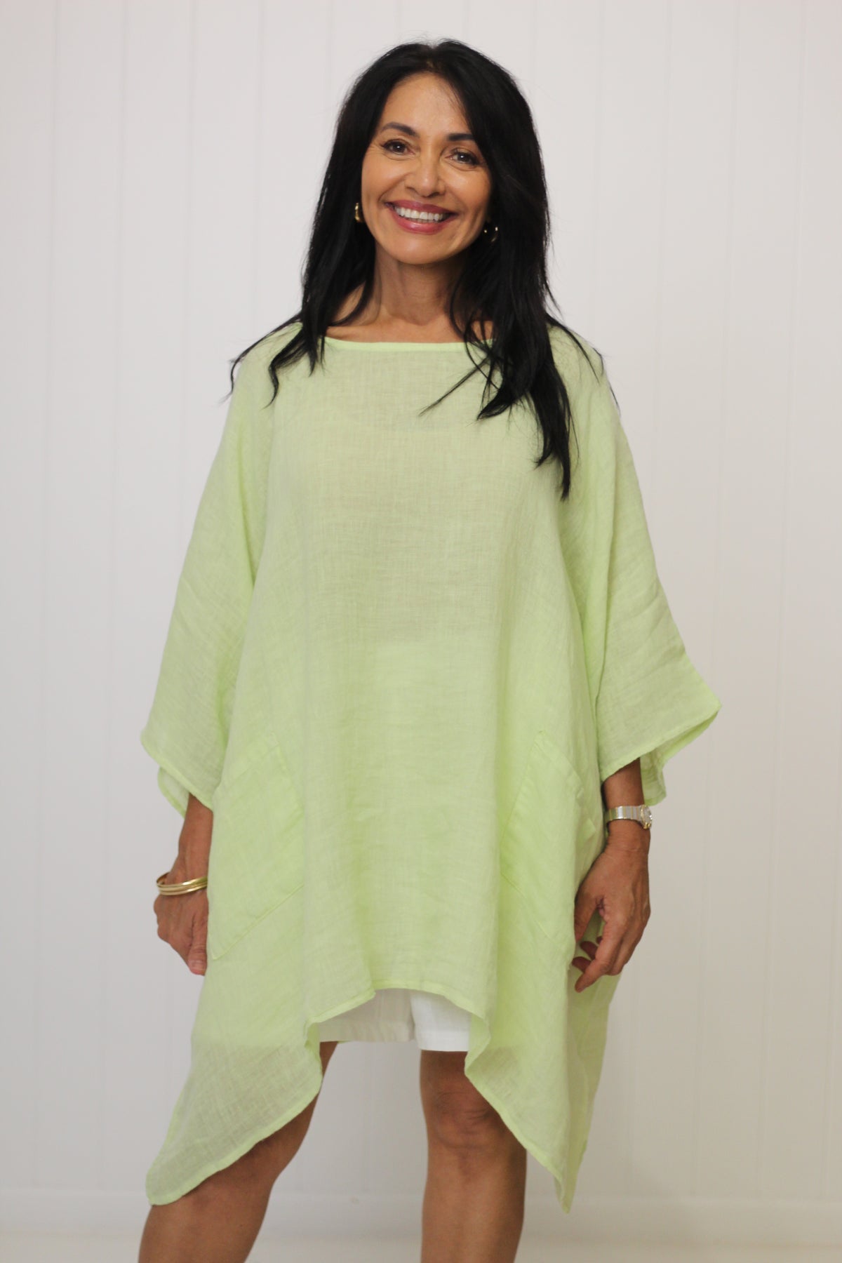 The Sardinia Top is an essential style for our customers who love to layer! Divine soft linen falls beautifully with the front pockets adding to the drape effect.