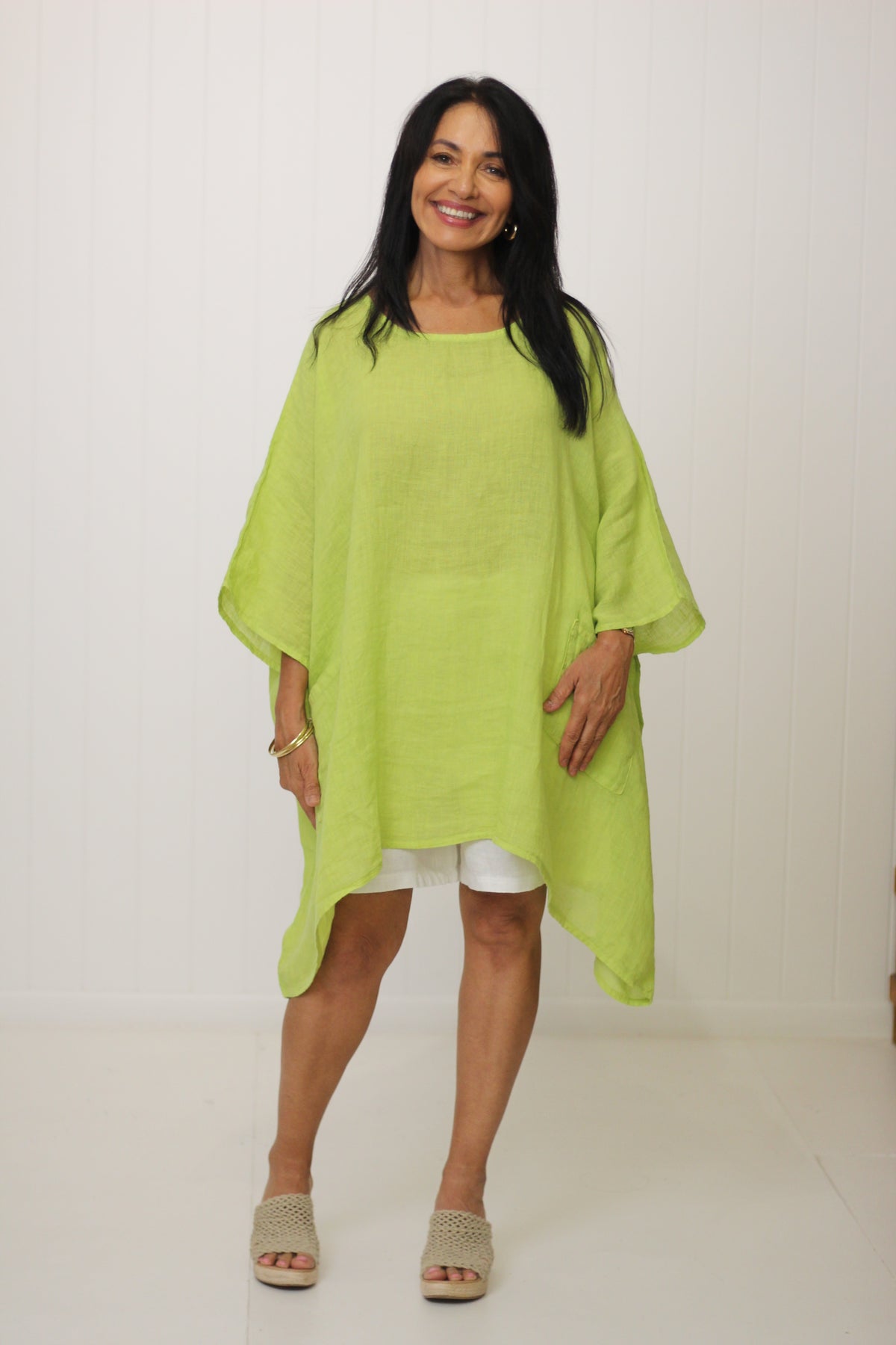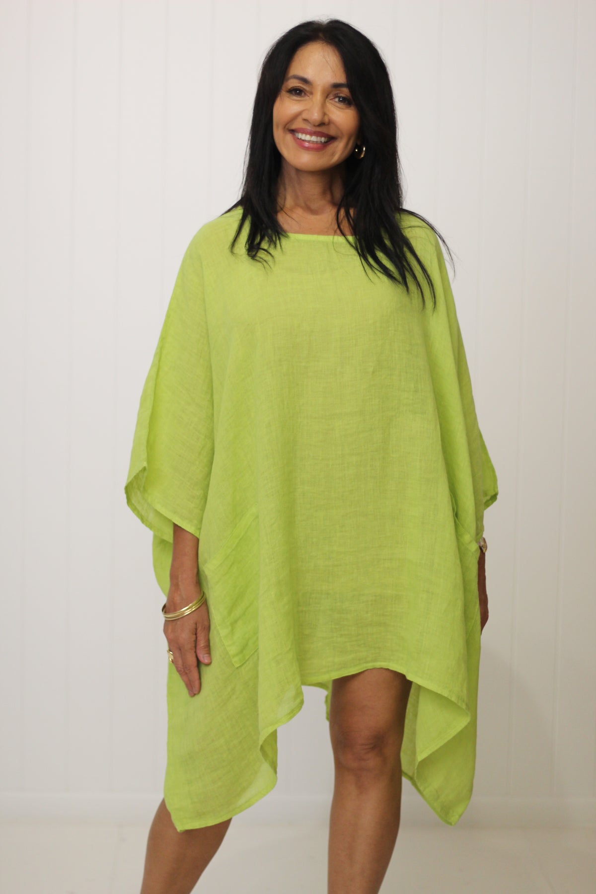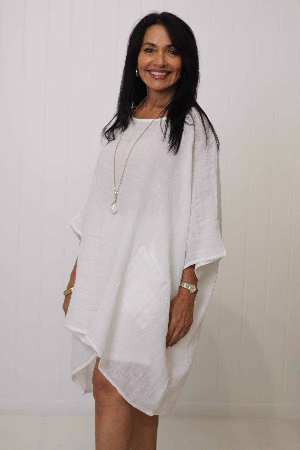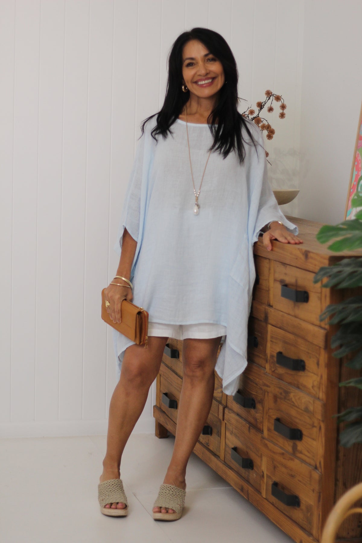The Sardinia Top is an essential style for our customers who love to layer! Divine soft linen falls beautifully with the front pockets adding to the drape effect.
