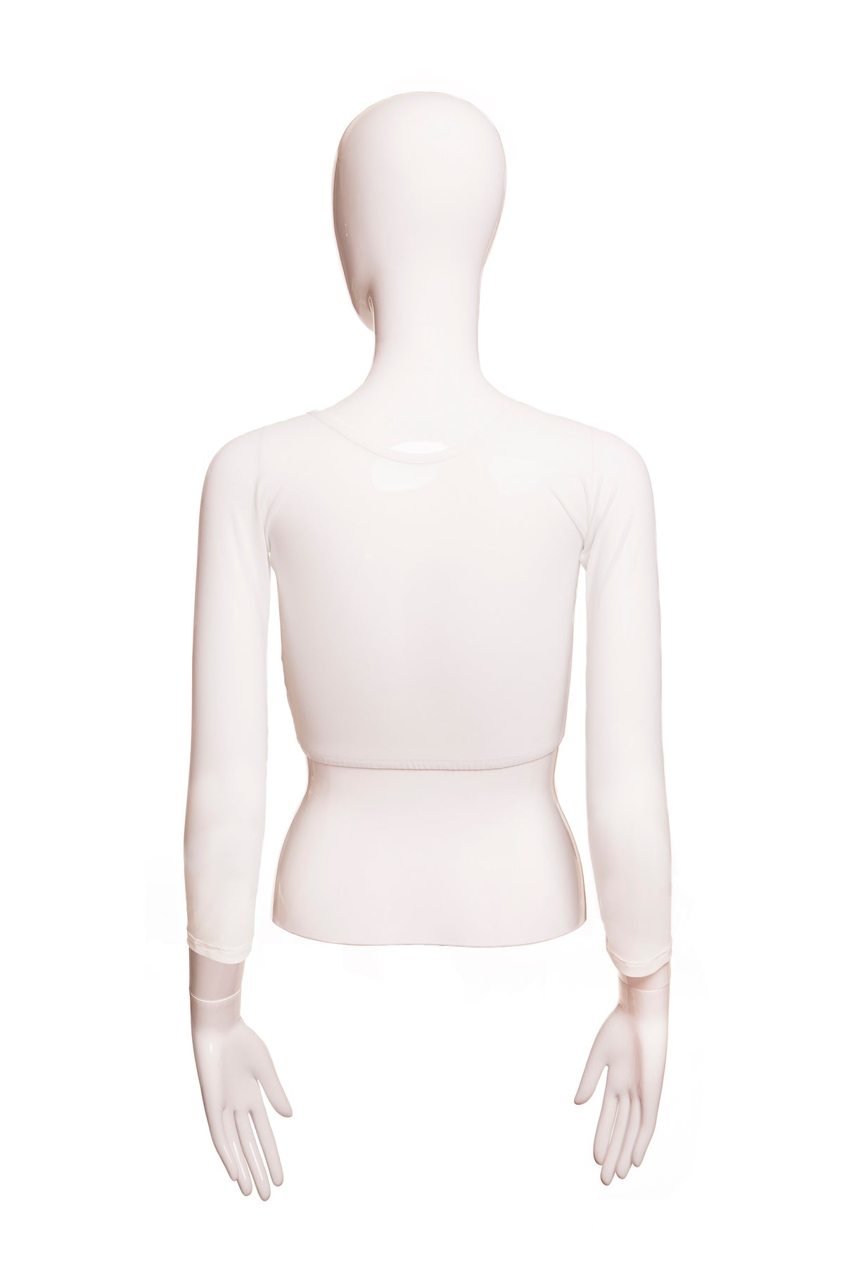 Clean lines define this classic sleevee style in a 4 way stretch mesh that gently hugs the arms making them appear more toned.