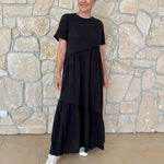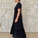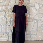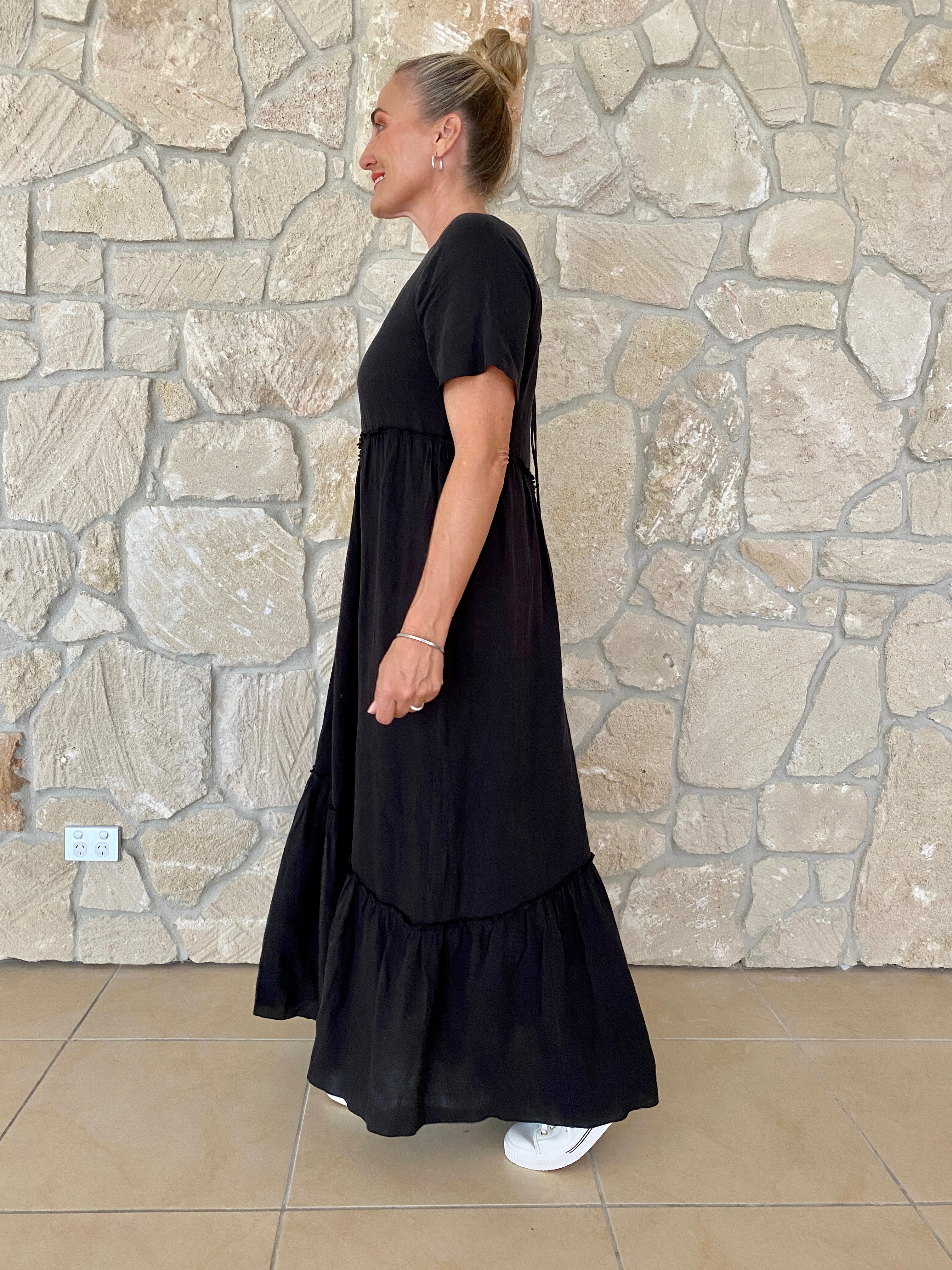The Alexandra Dress a short sleeved version of our best selling ELSA DRESS. This dress features two diagonal gathered seams across the body, a beautiful tie up detail at the back, secured with two ties. Style up or down, a blazer and wedge for a night out!