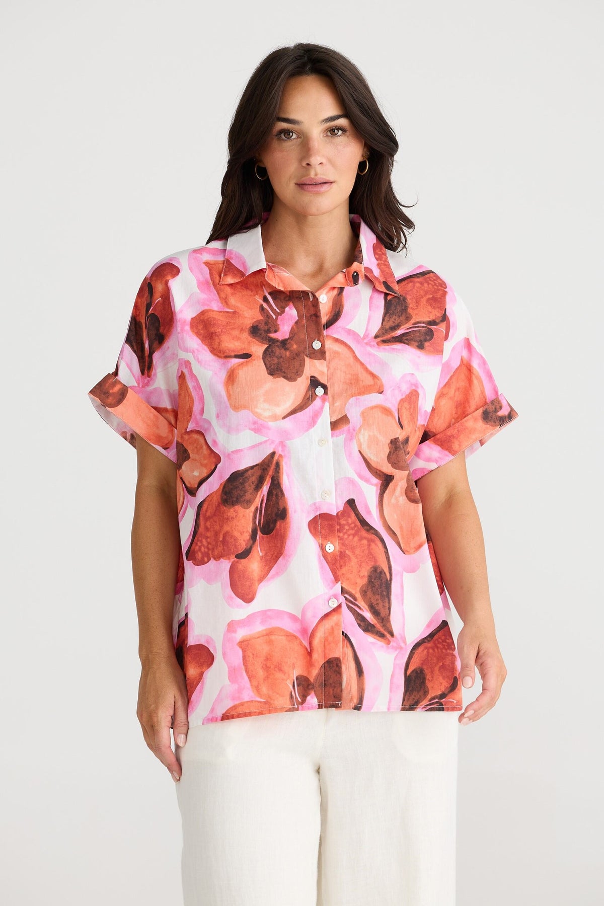 Introducing the Alice Shirt - the perfect springtime addition to your wardrobe. This lightweight shirt features a classic collar neckline and a convenient button-up design. With elbow length sleeves, it's the perfect blend of style and comfort for any occasion.