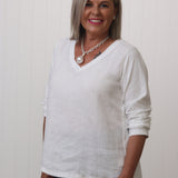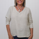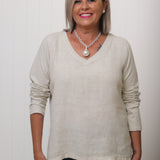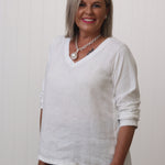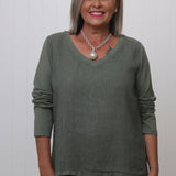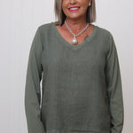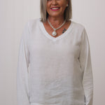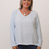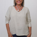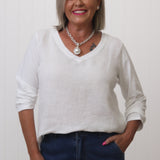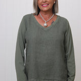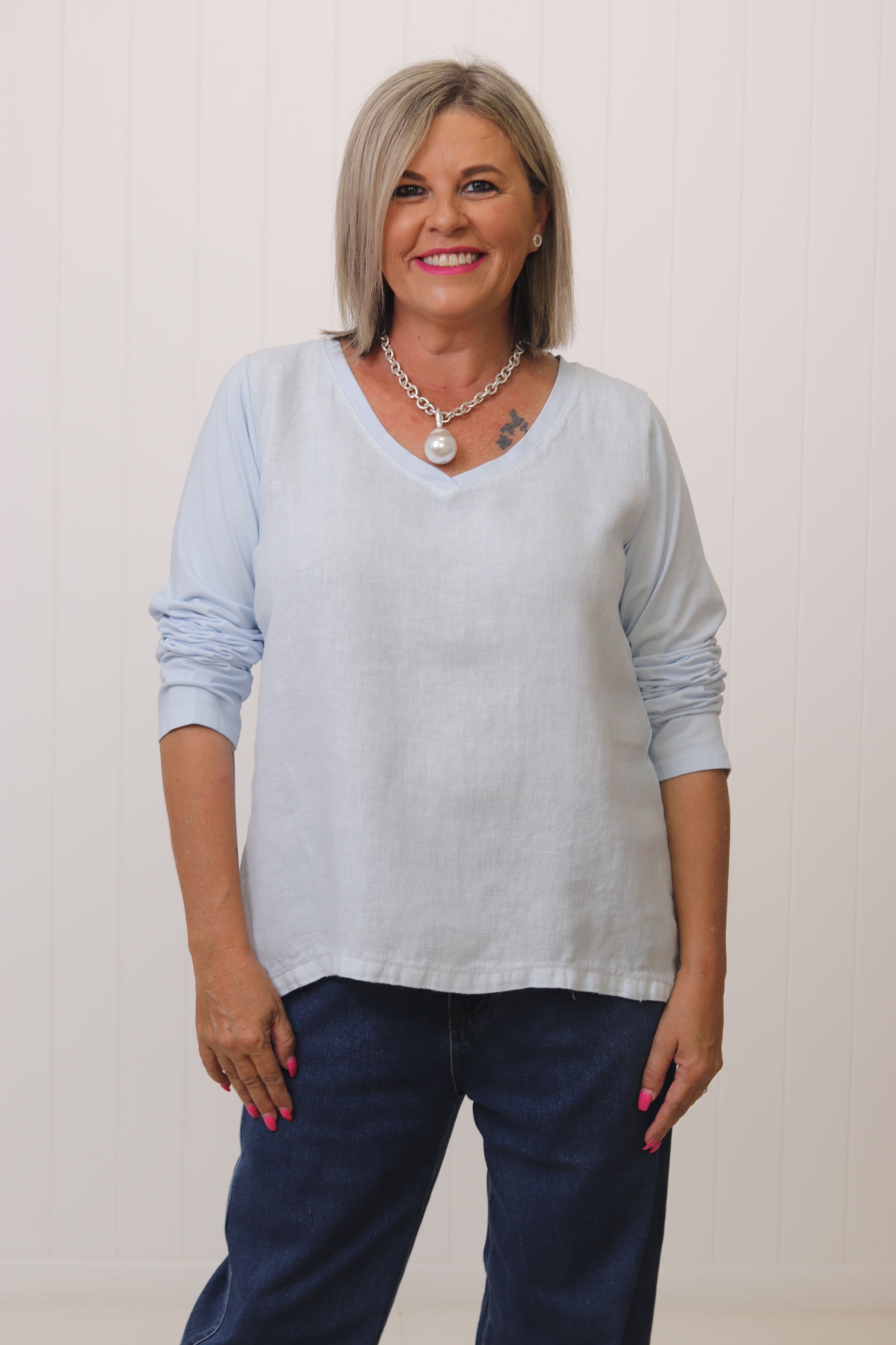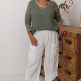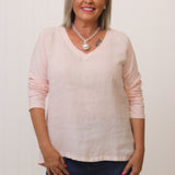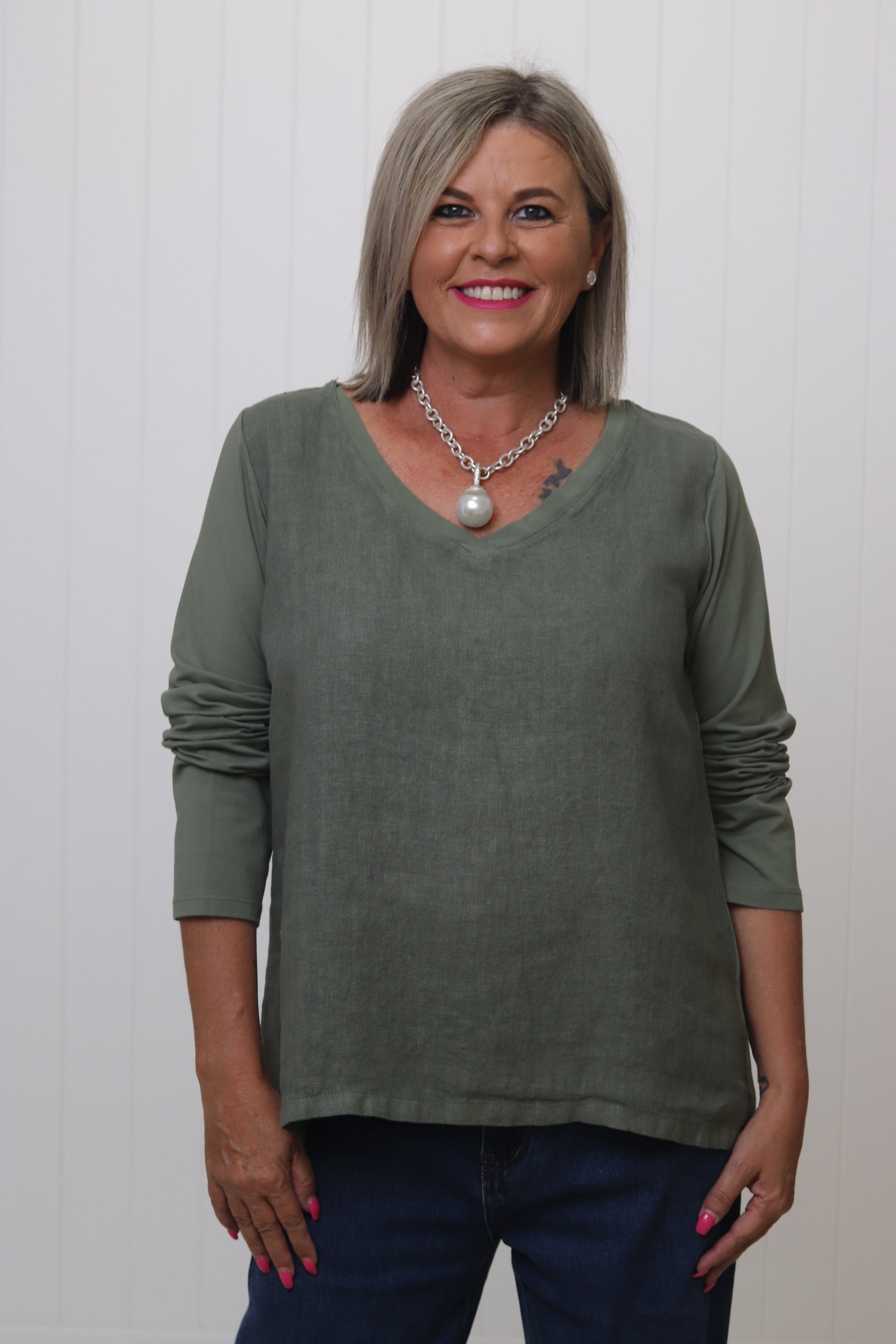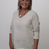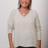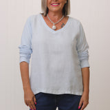 The Amalia Top is one of our most popular Costa Vita Purolino styles and now she comes with a full length sleeve making her perfect for styling when it is a little cooler. An essential piece for any wardrobe. With its smart yet casual look, it's perfect for everyday wear. Made with a 100% linen front and cotton back and sleeves, it offers both comfort and style. The slight varition we made from the original was to remove the wooden buttons off the neckline to allow for winter styling under jumpers and jackets. This creates a fantastic timeless style to allow endless options for the addition of jewellery and scarves.