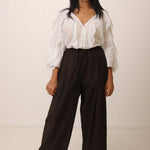 Drina is a size 8 and has styled the Amelia Draw String Pant with the Leah Button Shirt.