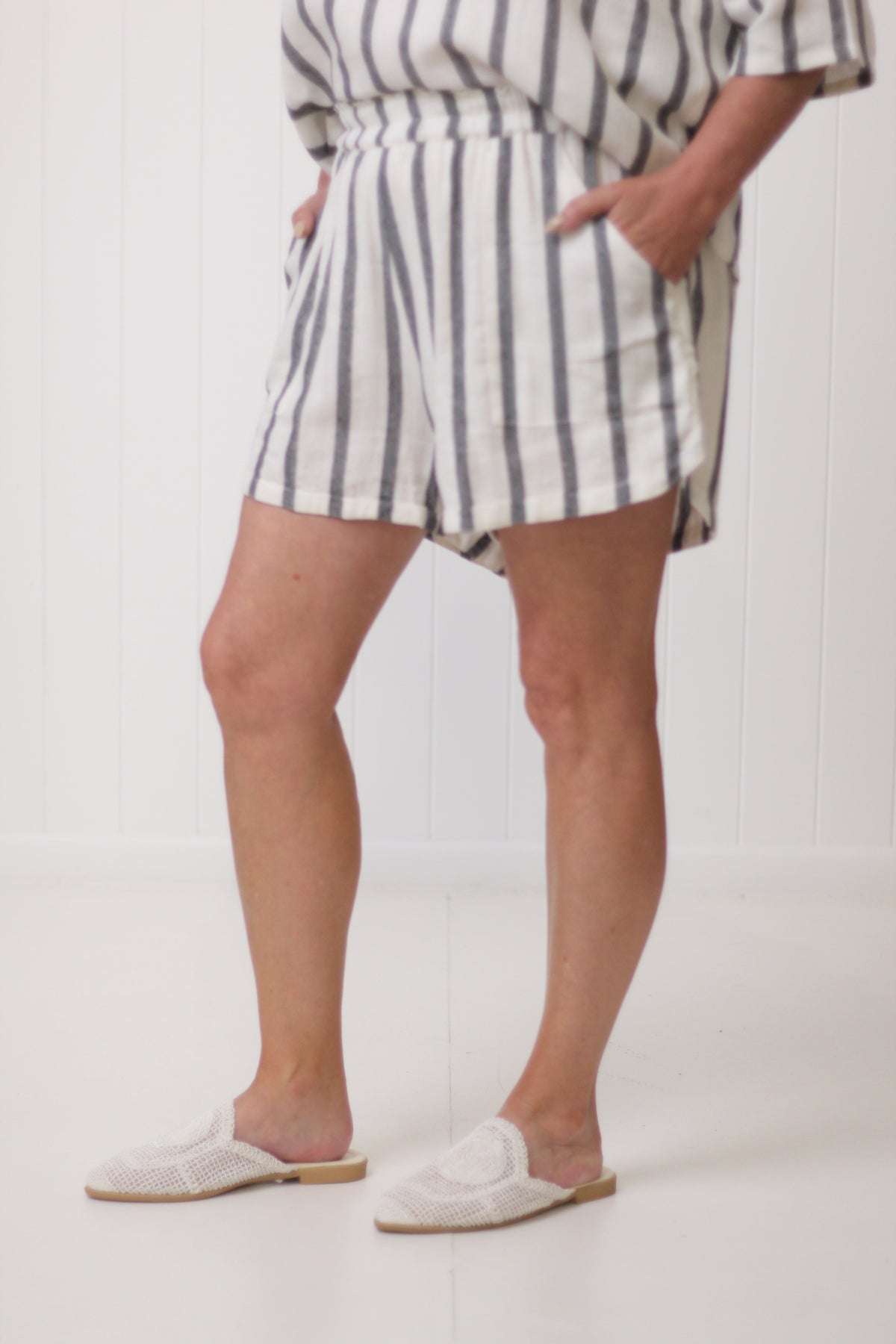 Expertly designed for comfort and style, the Amira Stripe Short boasts a chic stripe design with functional pockets and an elasticated waistband. Made from a lightweight blend of linen and rayon, these flowy shorts are perfect for the beach or any summer day. Enjoy the easy, breezy feel of these must-have shorts.