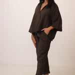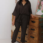 Drina is a size 8 and has styled the Andrea V neck Top with the Amelia Draw String Pant.