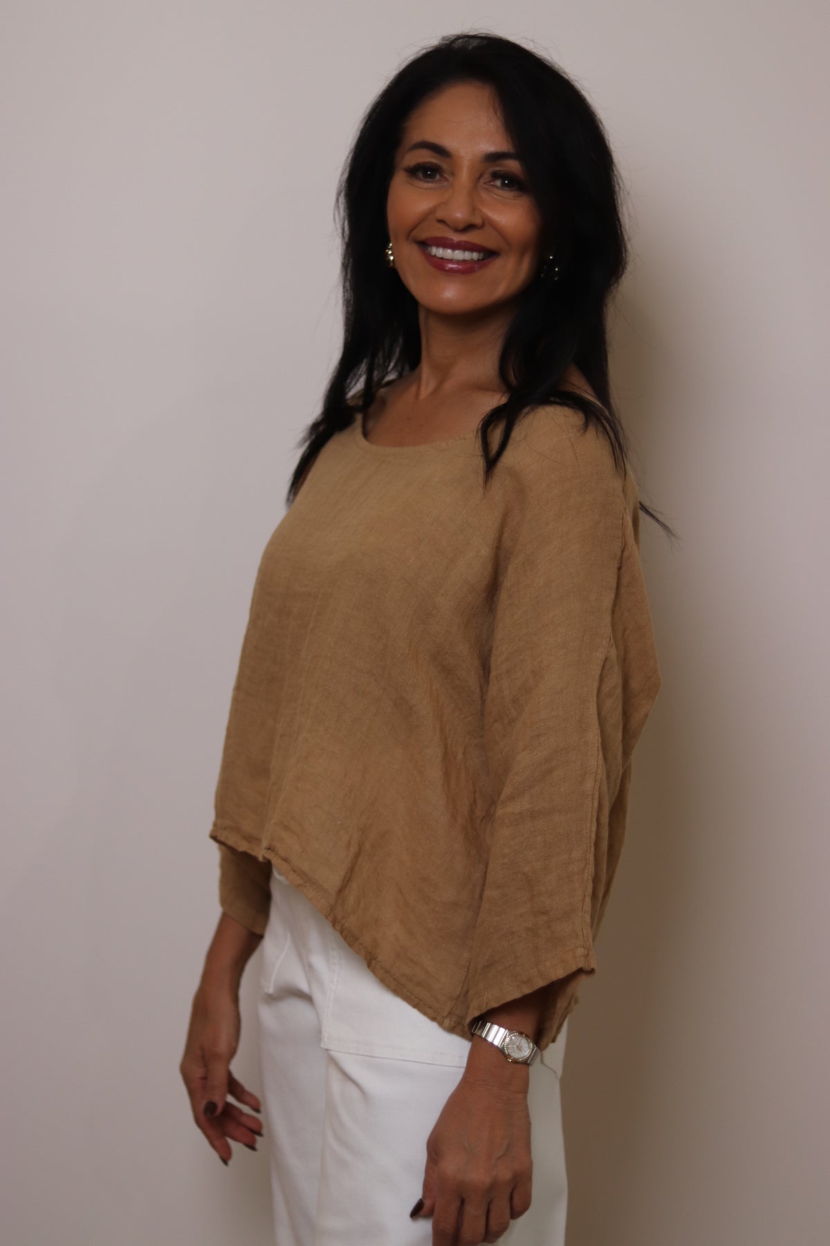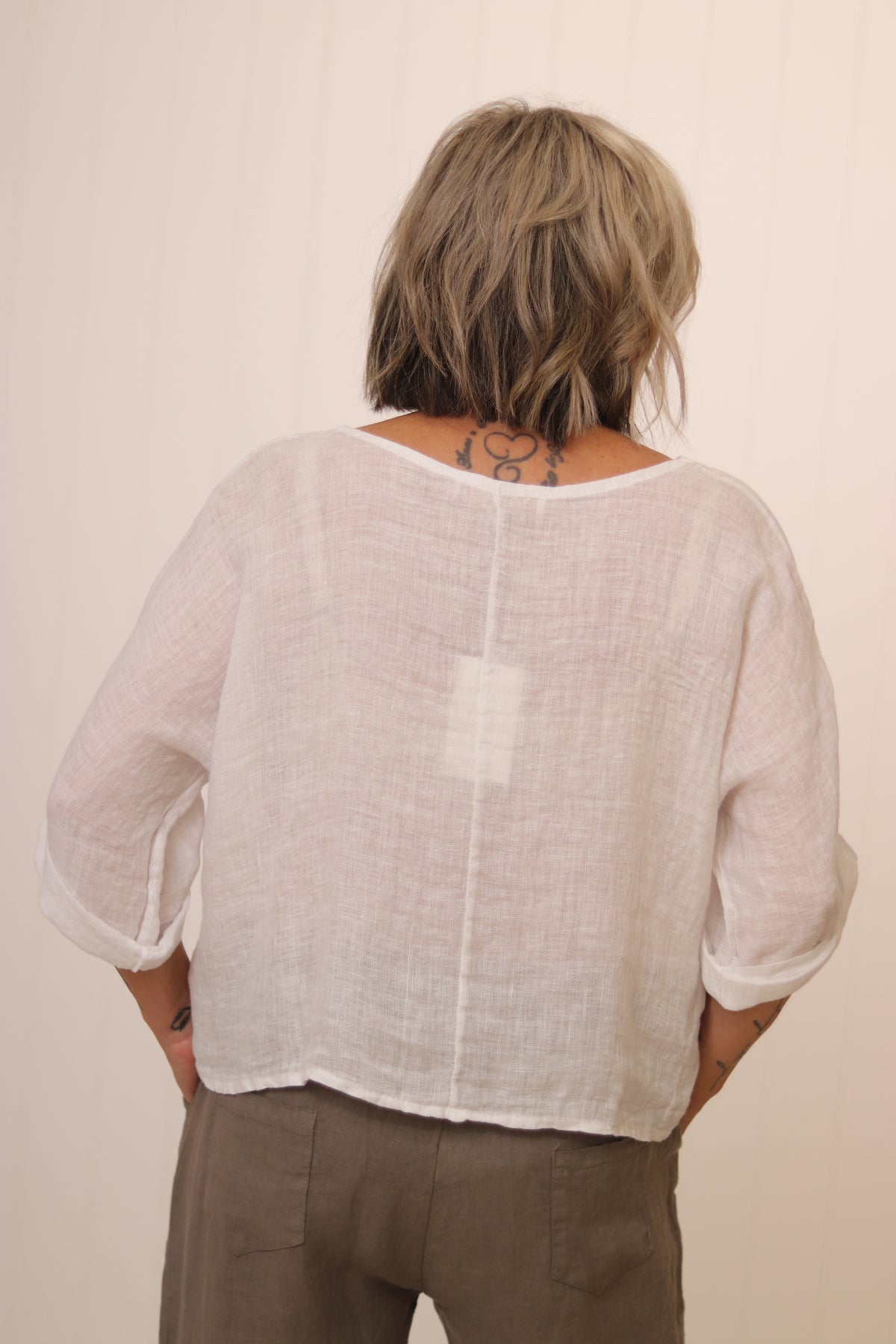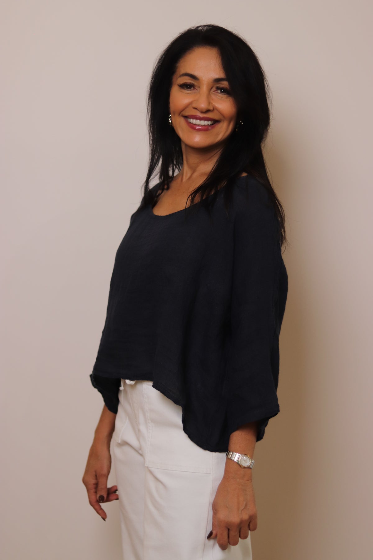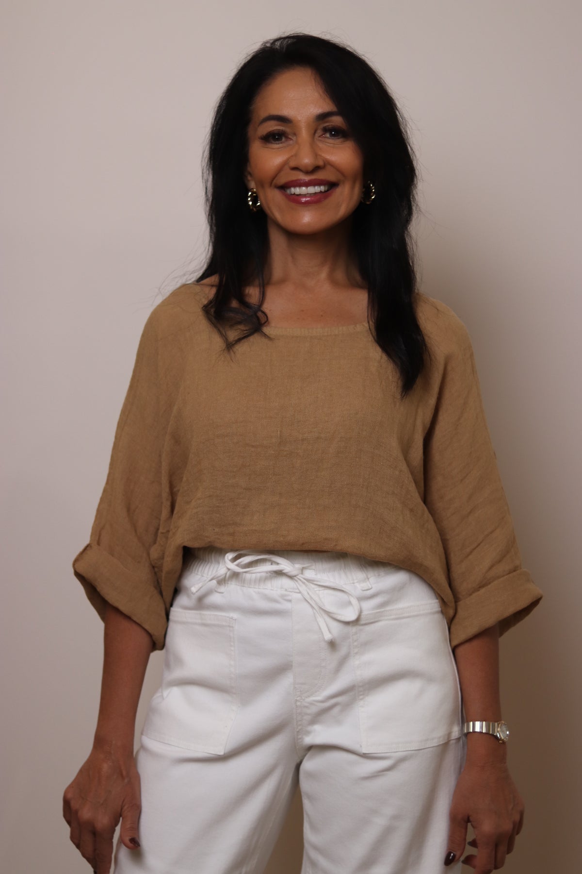 The Aria Top combines Italian style with premium lightweight linen gauze, offering exceptional breathability and softness