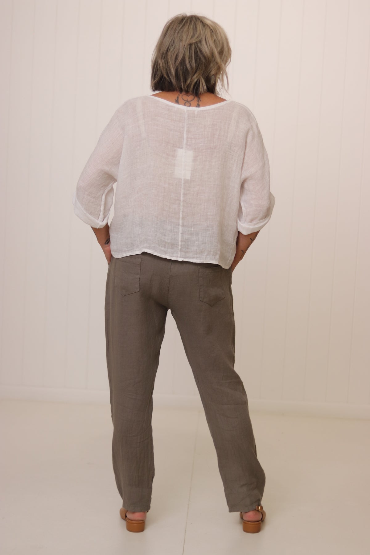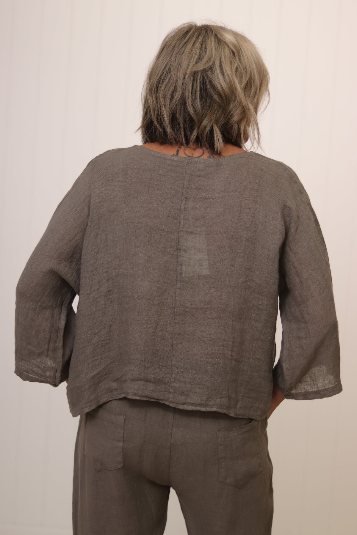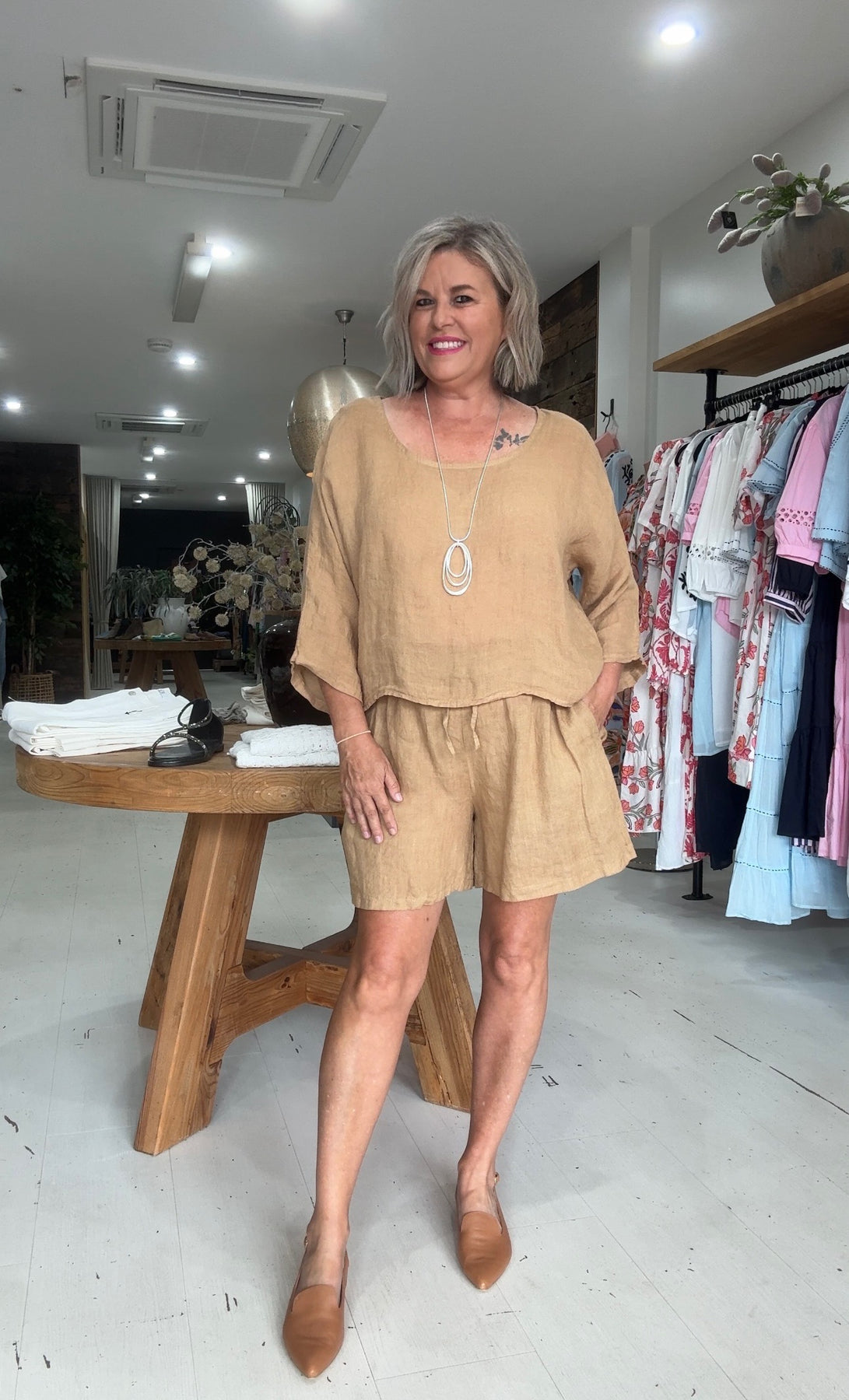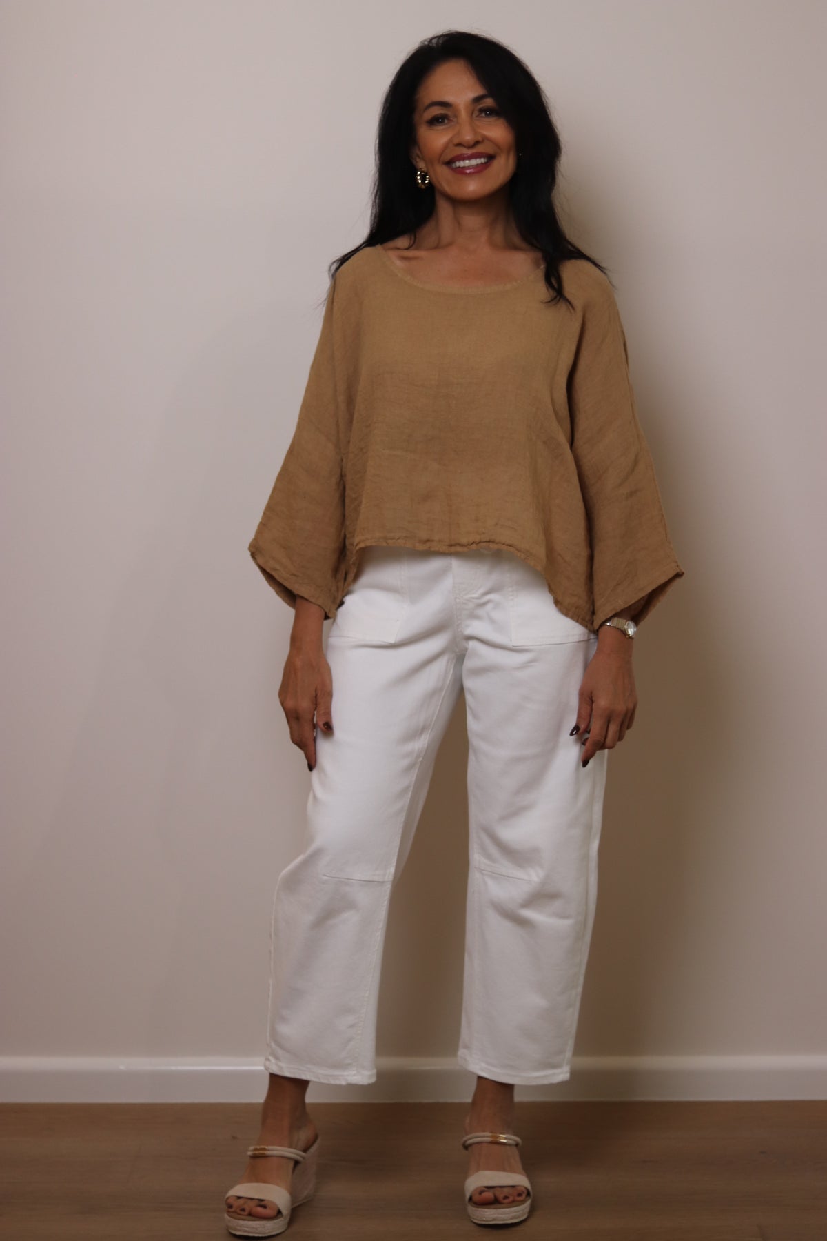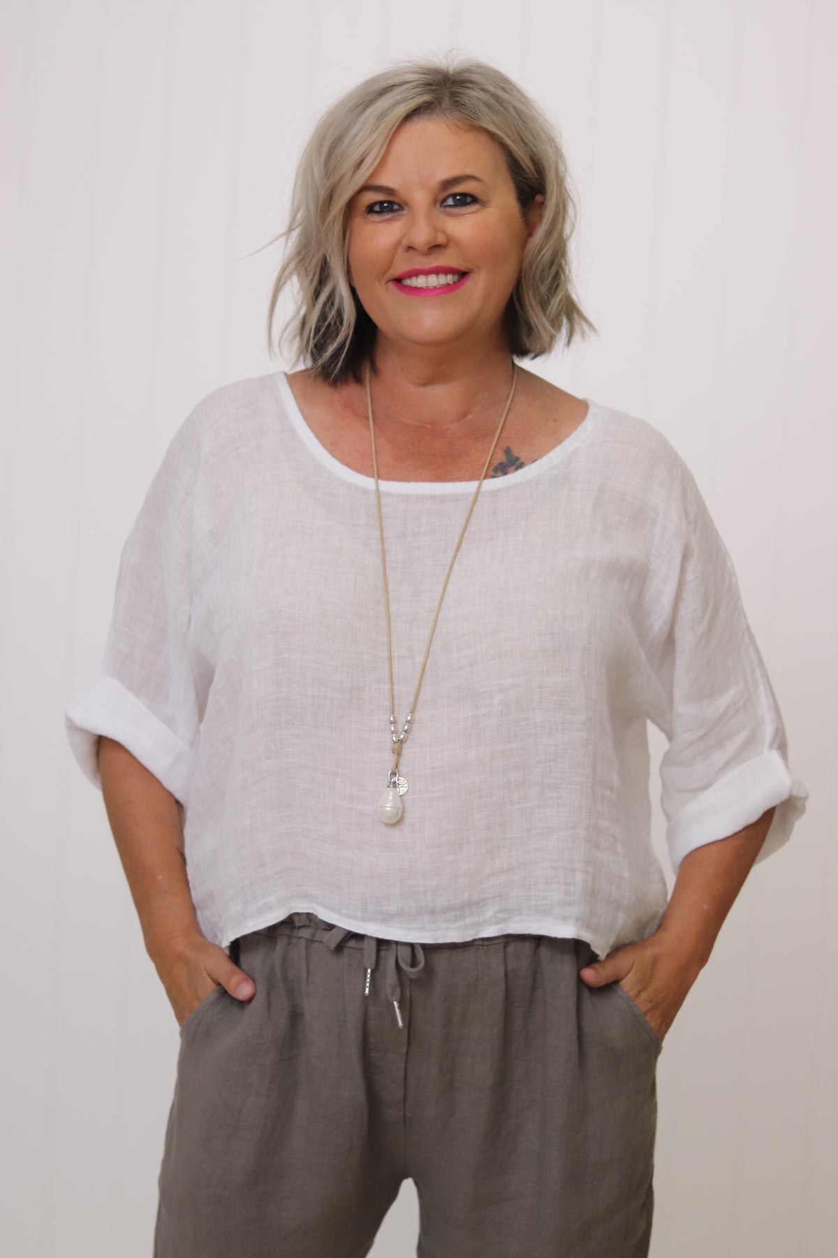 The Aria Top combines Italian style with premium lightweight linen gauze, offering exceptional breathability and softness
