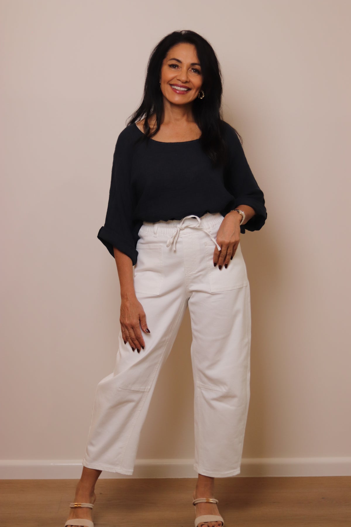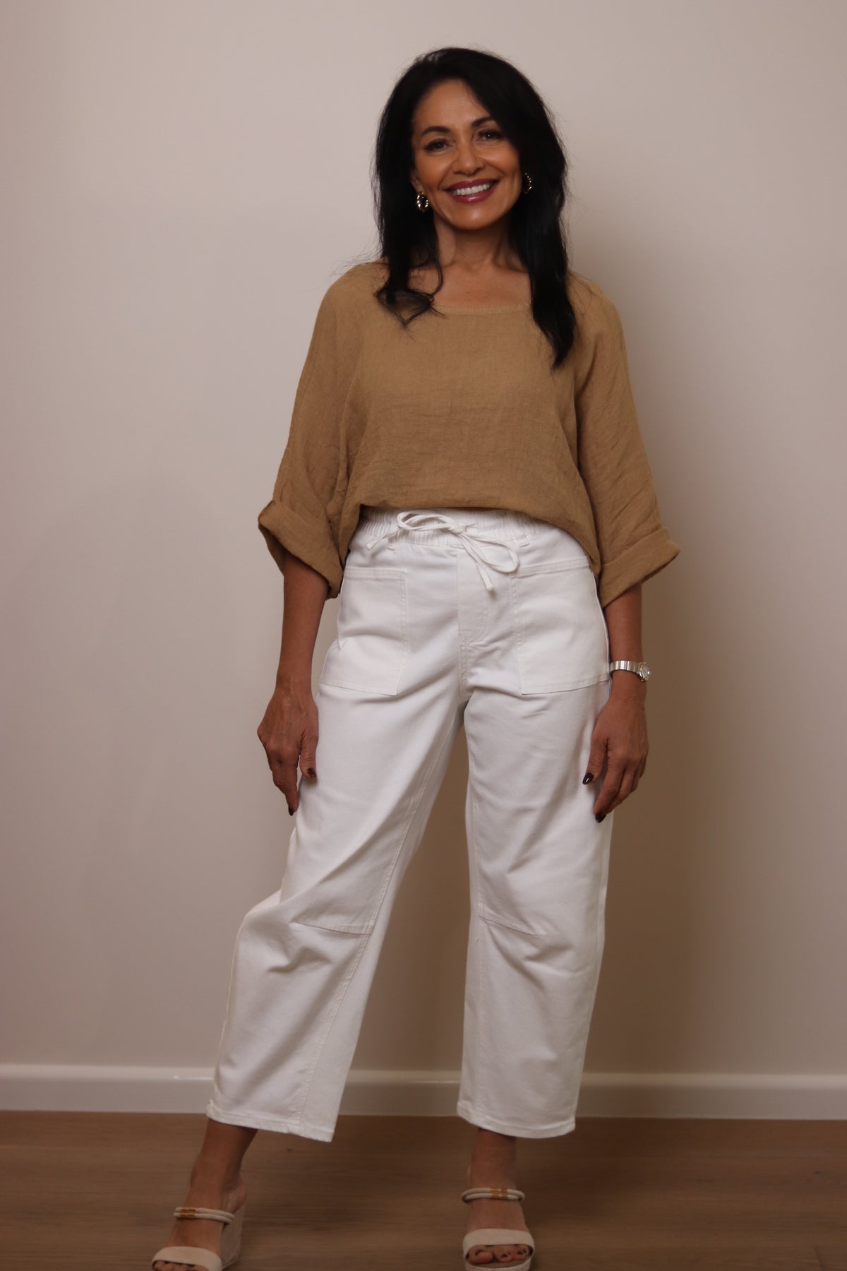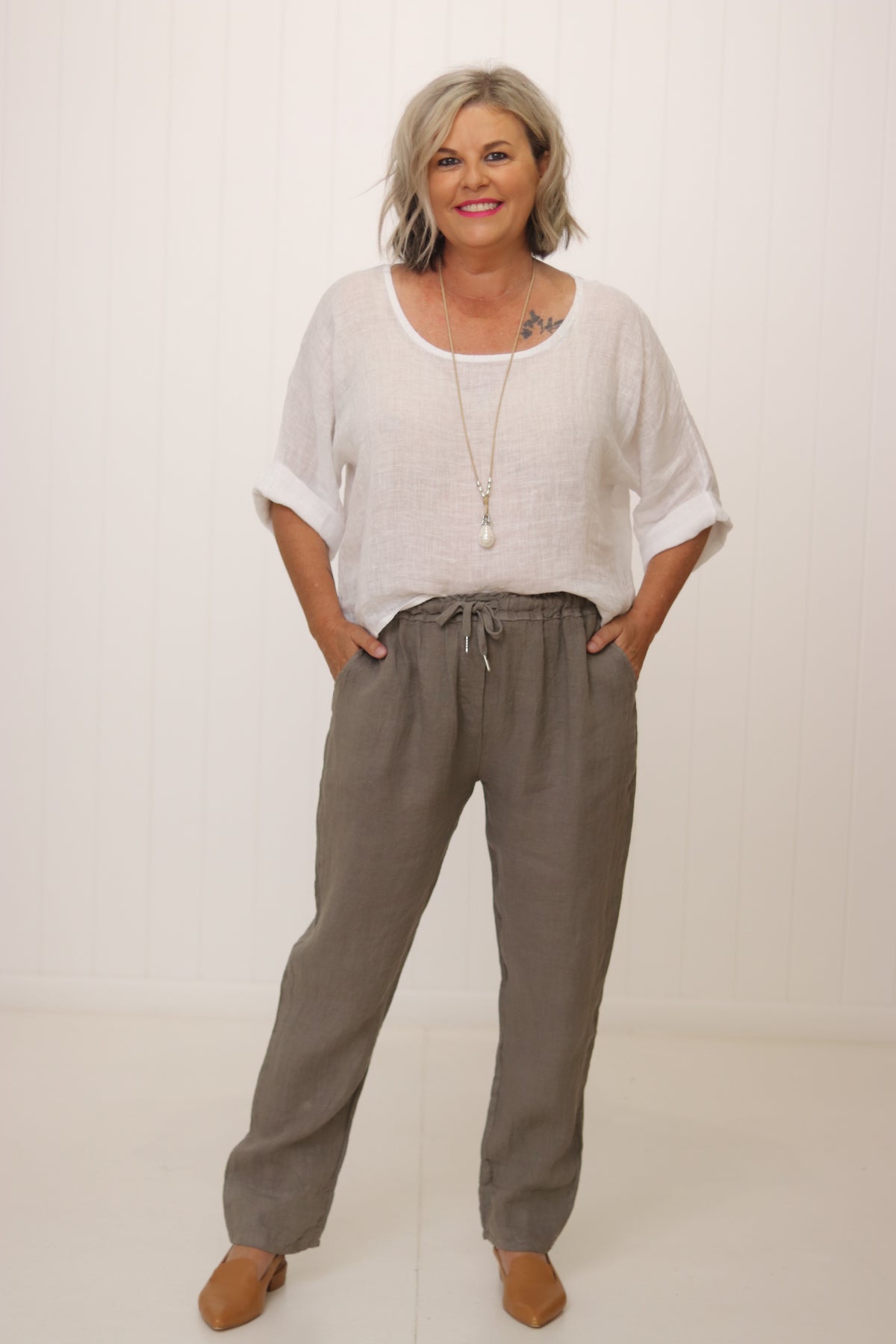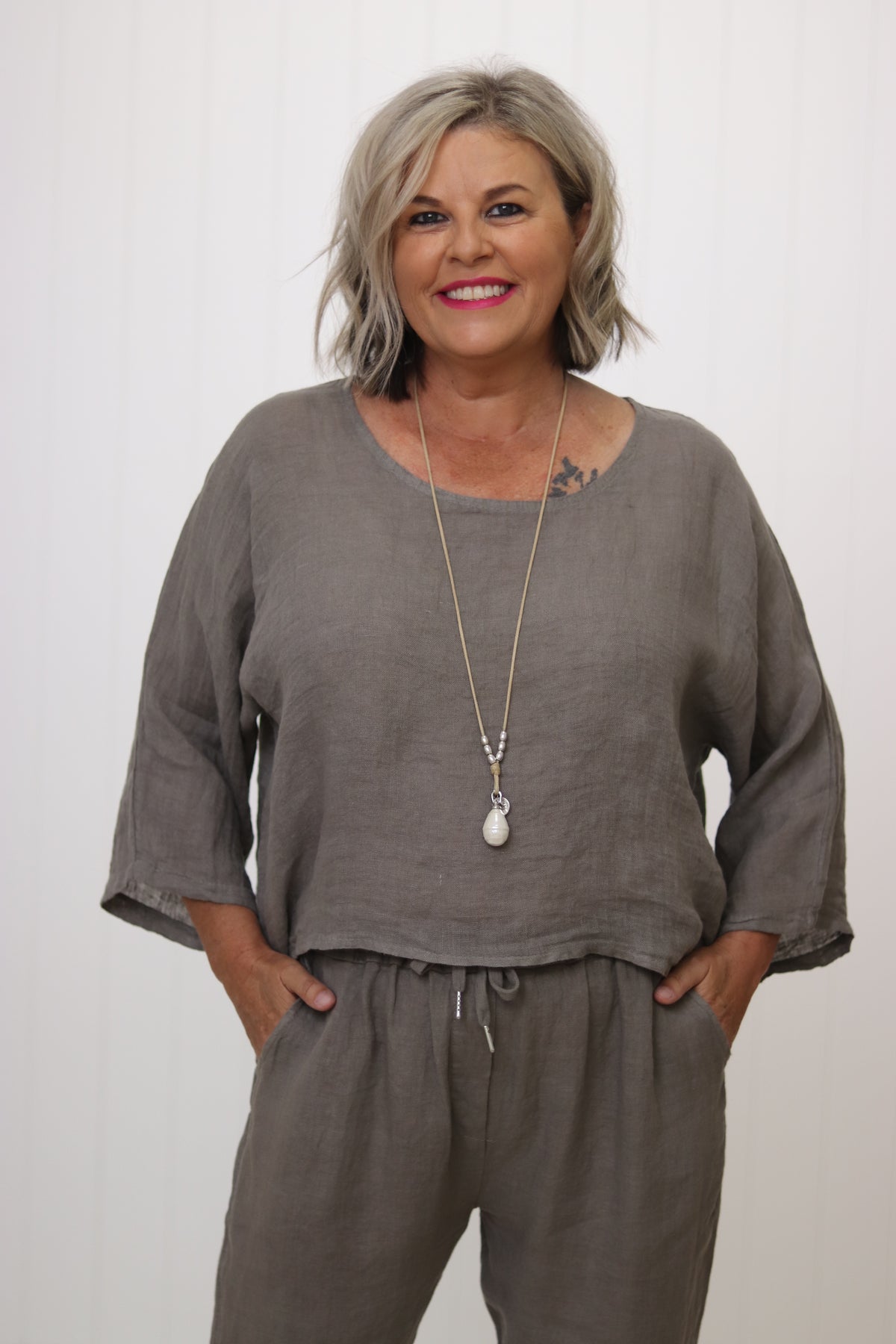 The Aria Top combines Italian style with premium lightweight linen gauze, offering exceptional breathability and softness