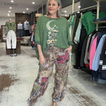 A statement in comfort and creativity - the Arms Length Pant feature a stunning patchwork-style print in rich earthy tones. Each panel tells a story, blending soft florals and textured patterns for a look that’s effortlessly bohemian and beautifully unique.