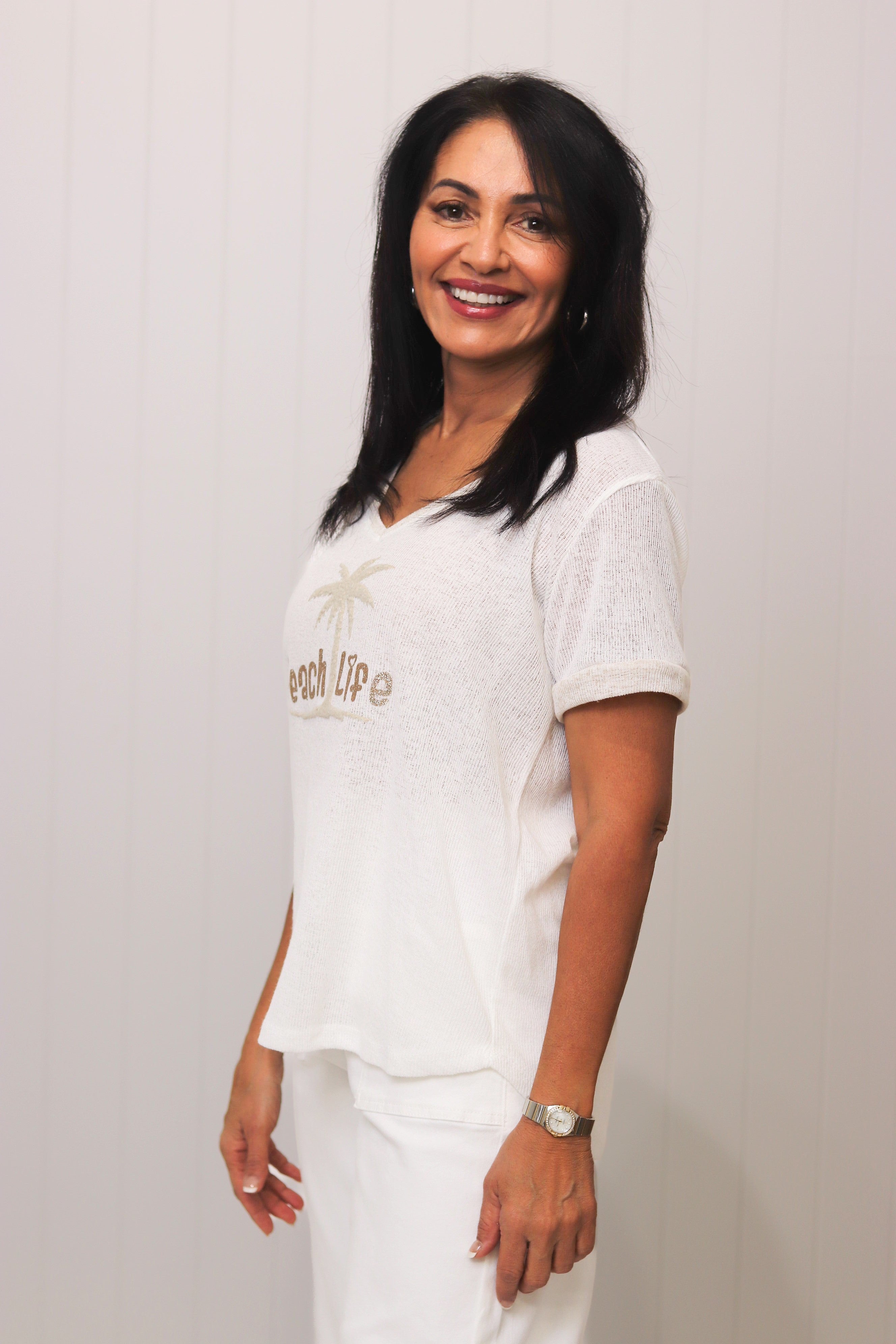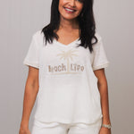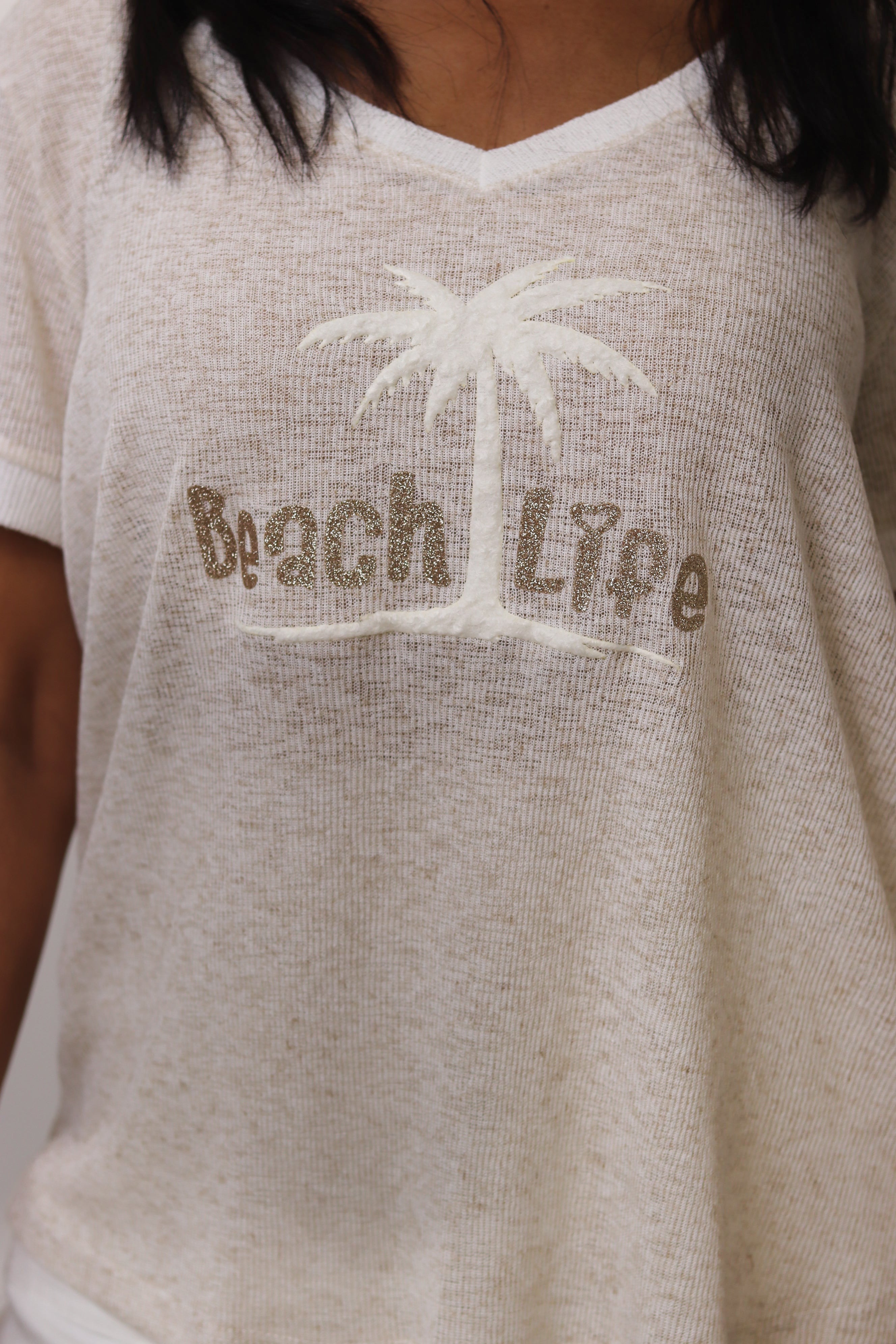 The Beach Life Tee offers a lightweight, soft ribbed texture that ensures comfort and style.