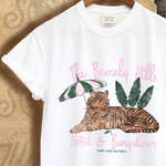 Channel effortless California cool in this vintage-inspired graphic tee. Crafted from 100% cotton with a washed charcoal finish, it features a playful tiger print and retro lettering that nods to the iconic Beverly Hills Hotel. Designed in a relaxed, lived-in fit, this tee is perfect for off-duty days or pairing with denim for that laid-back, sun-soaked look.