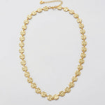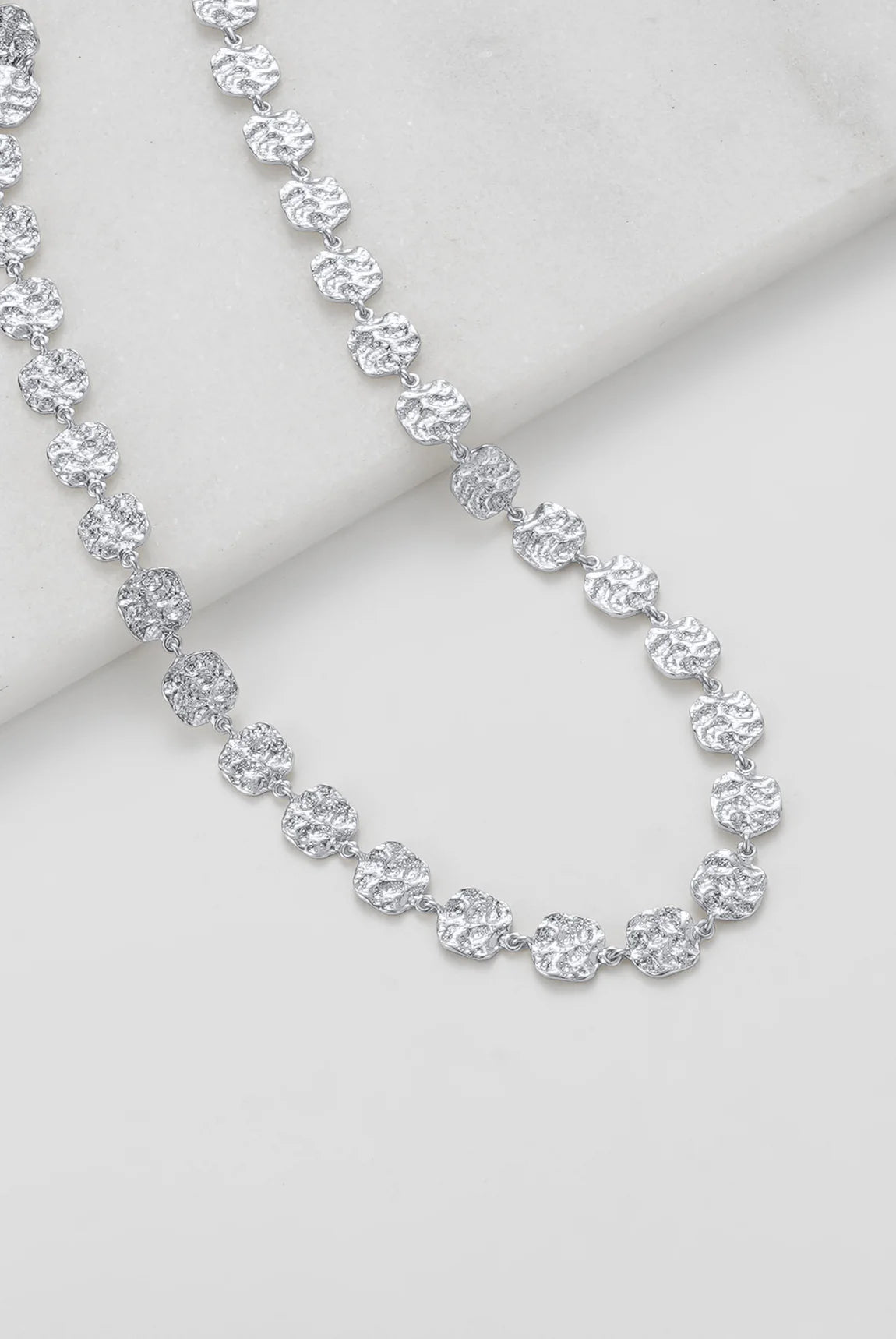 The Bonnie Necklace is a modern classic with a textured twist. Featuring a chain of organic-inspired disks, each piece catches the light with a subtle shimmer, creating a look that’s both bold and versatile. Perfect worn solo as a statement or layered with finer chains, this necklace adds texture and elegance to any outfit. Pair with the Bonny Bracelet for the perfect stack.