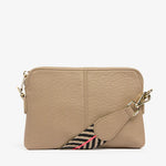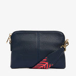 Strap: Detachable cotton crossbody strap in custom chevron stripe, adjustable to 140cm